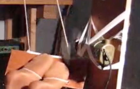 Made a footboard, and tied it to the ceiling. Then tied my ankles, and taped my feet to the board. Amplifier in the background, in case I got inspired to play some music. 😁