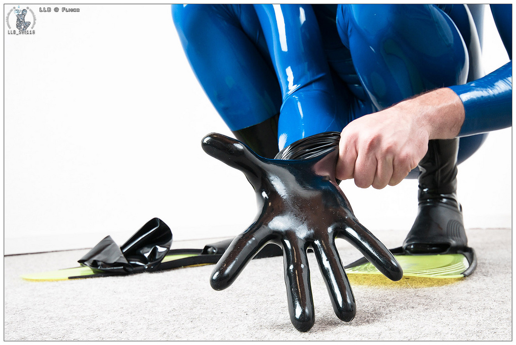 RubberVita in a "in my wish list catsuit" playing in sand and water: