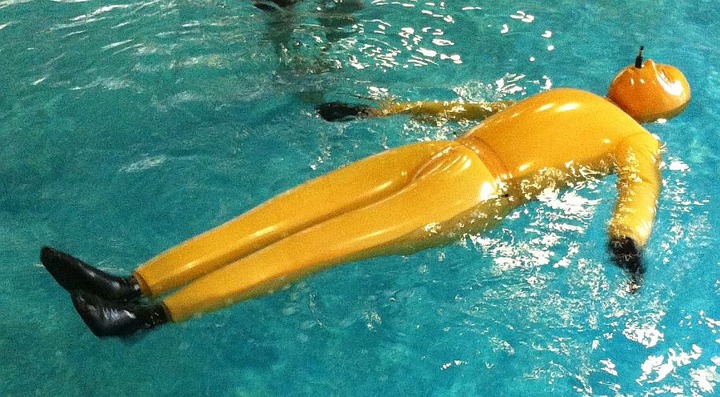 Totally encased in inflatable latex and drifting in the water. Something I would like to experience!