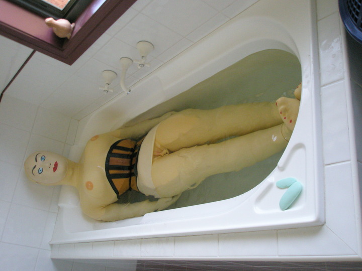 swimming-in-latex-33-bathtub.jpg    evening bathing (before going to bed?) in a ... rubber doll suit?