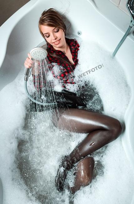 Swimming or taking a bath in pantyhose, stockings or zentai