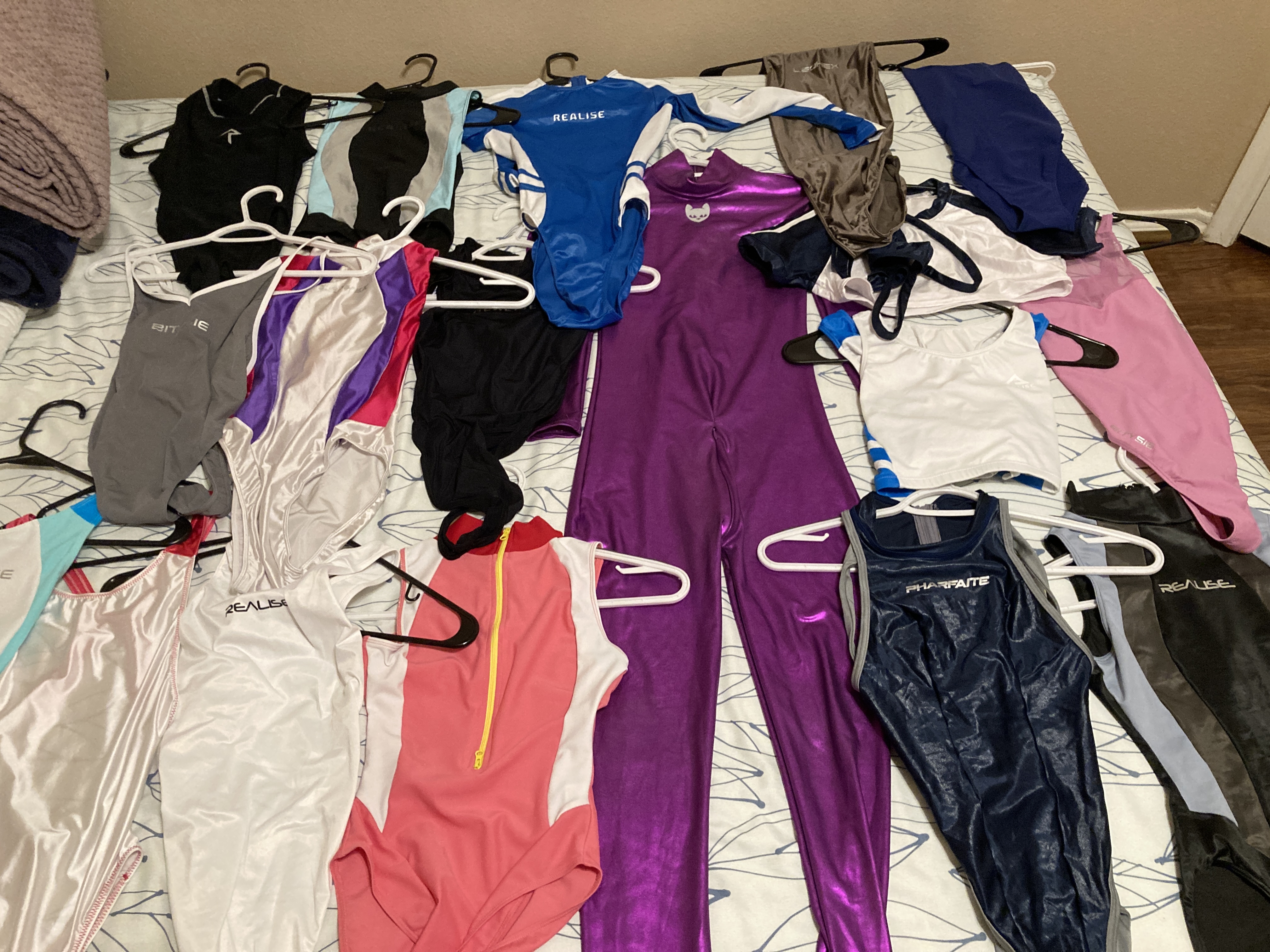 (01 Jun 2023, 03:16 )kenwaynguyen Wrote: Hi guys. I would like to share with you my swimsuit collection that I have. You have some that are high on my wish list. Like the Pharfaite one and the Hiro Gato catsuit. I don't have any of the really expensive stuff. This was a part of my collection in 2018, currently add at least 20 more to this pile. That's just the swimsuits, add a bunch of leotards and catsuits, I might have a fetish... (01 Jun 2023, 07:45 )unicast Wrote: Nice collection. Especialy the blue sleeved Realise model, the black (or dark blue) Pharfaite and the black water polo sleeveless Hirogato (? is it ?). Also the black/gray Realise. I'm not into colors like pink or violet, but yeah, I found four or five of yours really cool.Ah, the black water polo sleeveless you mentioned in the first pic, next to the Hirogato catsuit is the Italian sheer Realise T-2020. It isn't as tight as the other Realise suits, so it fits as lingerie. I also very much like bright pink and violet. Those colors are very cute, and they turn me on. (01 Jun 2023, 08:03 )Anne Wrote: This was a part of my collection in 2018, currently add at least 20 more to this pile. That's just the swimsuits, add a bunch of leotards and catsuits, I might have a fetish...Can you also share your collection as well? I am curious. Also regarding the expensive suits. I think of it as, instead of buying multiple lower priced suit, I can instead not buying them, save up and then get one really expensive suit. Trade offs. Isn't that why we're here? Because we have a swimsuit fetish? (01 Jun 2023, 03:16 )kenwaynguyen Wrote: Hi guys. I would like to share with you my swimsuit collection that I have. I think it's an absolutely exquisite collection, and I'd love to see pictures of you wearing them. BTW, I'm straight, but I think that high leg, tight-fitting swimsuits can look sexy on men, too. And since some of them are high on my wish list, it would be great to see how they fit you. It seems we share the fetish for high legged zipper back suits, as I also own a lot of them (but not as much as you). My collection consists of a lot of older competition suits*, some Leohex, a Pengu and a lot of cheap Chinese suits (some of which are surprisingly good). If you're interested, I can take pictures. *My fetish started back in the 1990ies when Speedo created those incredible Hydrasuits. They had an extremely stretchy fabric called S2000 in their competition suits, so athletes sized them down considerably tight fit. Which created an even higher leg cut as the suits were stretched out. (01 Jun 2023, 23:48 )johngerners Wrote:Of course, I would love to see your collections. And I also want to know where to get the cheap Chinese suits you mentioned.(01 Jun 2023, 03:16 )kenwaynguyen Wrote: Hi guys. I would like to share with you my swimsuit collection that I have. |