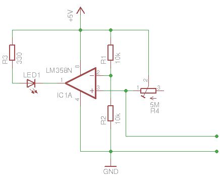The variable resistor is to calibrate the sensitivity. When it's set right, the LED is lit as long as there's a wet path between the contact points.