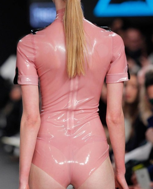 Pink latex swimsuit and pink self-shrinking plastic mummybag 😋