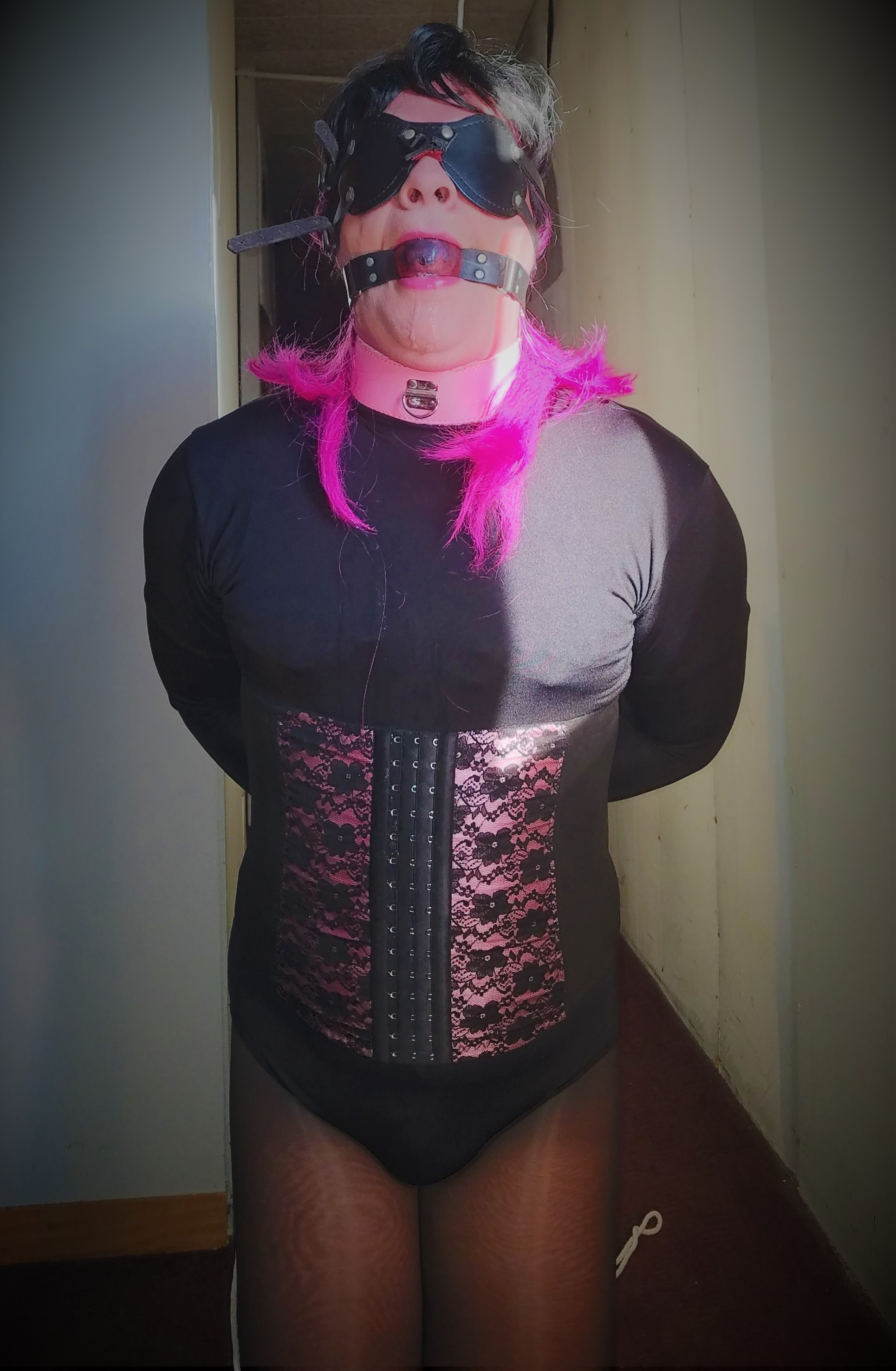 Whew! All told, it was about 15 minutes of standing time and that was long enough. Maybe some vibration or plugs could be added to up the bondage factor, but overall it was very pleasurable. I give this a 4/5 stars, with the allowance for more stimulation and a longer session to up the difficulty factor.