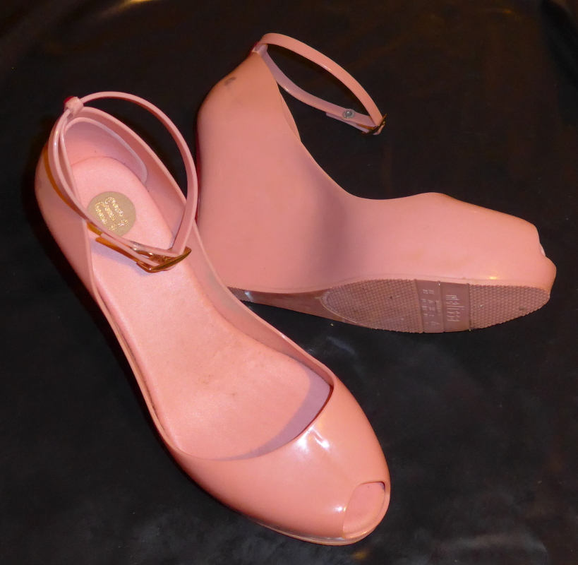 A warning about pink rubber, it's very prone to staining other items and being stained itself. I hung a white latex dress next to the leo and now it has pink marks on it. Conversely, my molded rubber Melissa wedges picked up black stains through being stored next to black leather shoes.