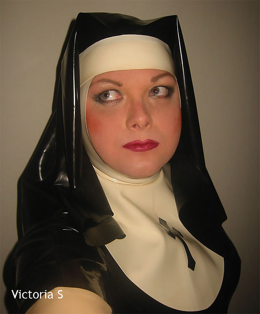 I just bought one of these Nun head-dresses from DeMask, it arrived today. I started to write screeds about it but no, just believe me, the combo of skin-tight and loose-and-floppy rubber both of exactly the right weight and thickness is absolutely awesome.