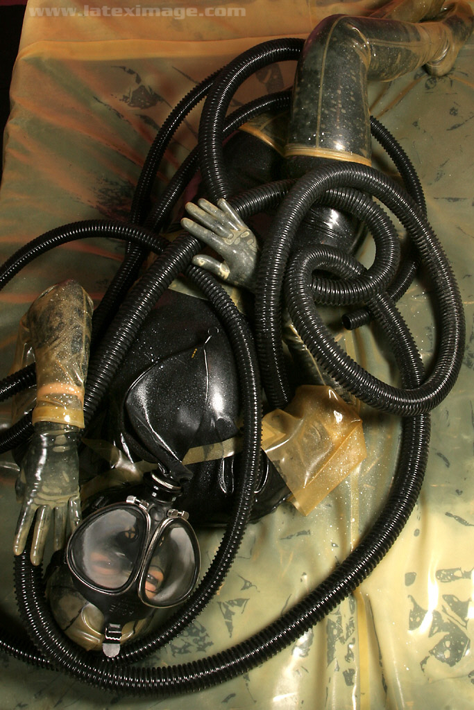 Transparent rubber tights and catsuits