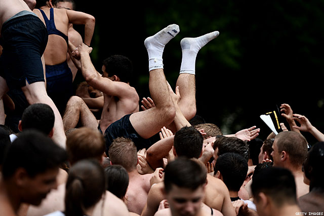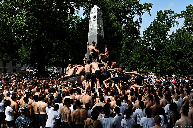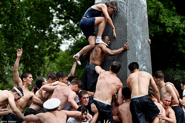 Was browsing thorough a few images of Naval Academy freshmen climb " slippery soft-core action to reach the top of the lard-coated phallic hunk of granite", when I noticed something:
