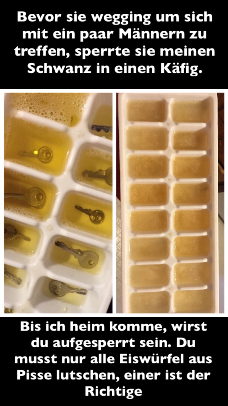 tumblr_obib0iDko91uo3owwo1_1280.jpg    - I've not translated this, but imagine that the key to your cuffs/locks was sealed inside the ice and you could either wait until it has melted or speed up the process using your mouth.... the clever (evil?) bit is that there are many keys frozen in ice and only one will open the lock......