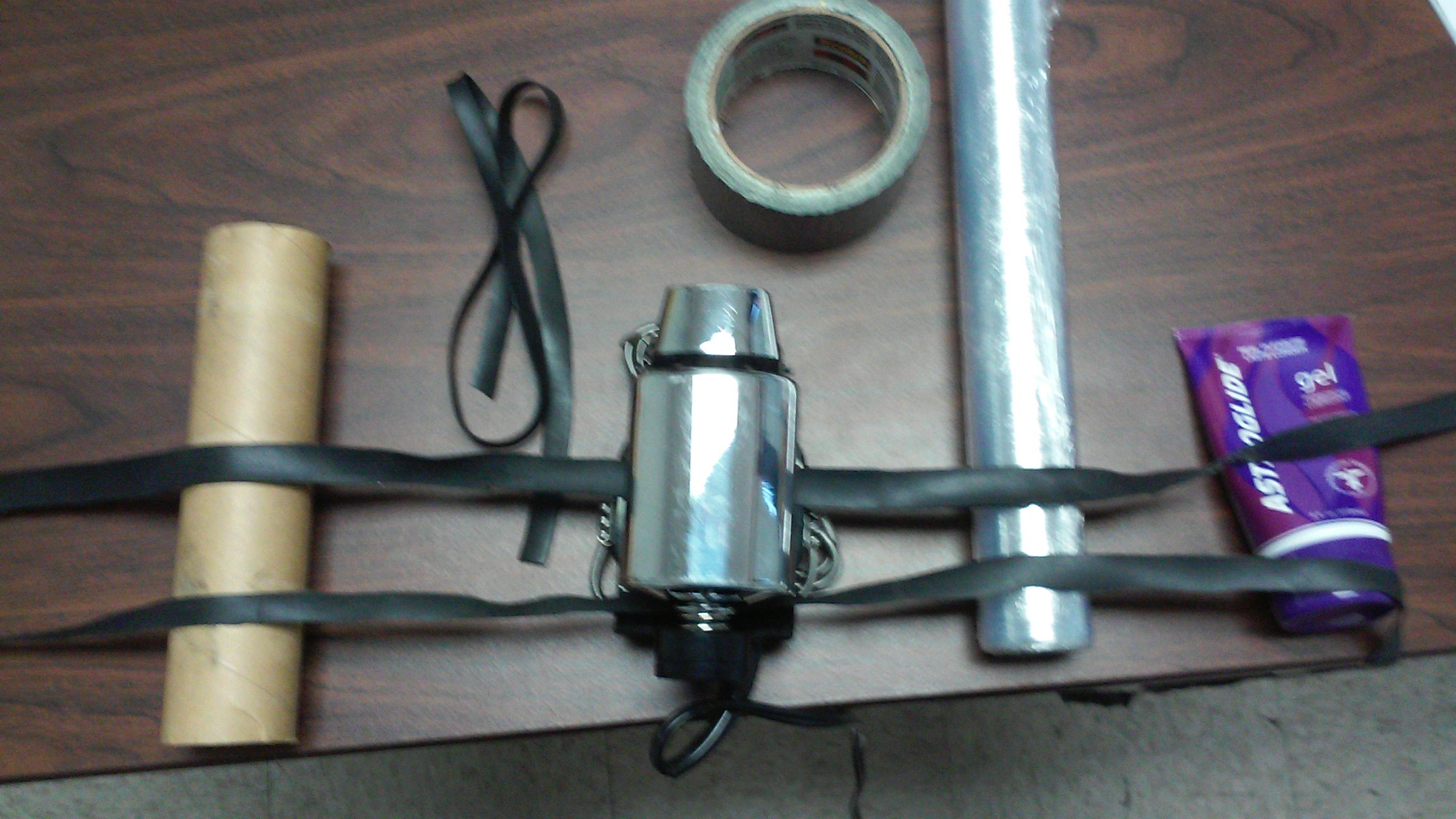 7) Showing the tube attached. Be very careful to not let the tape touch any hair of skin because you will regret that later. Once attached there was a few more wraps to insure everything was secure.