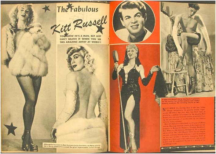 Adrian Ames Chris Ames Skip Arnold Babe Baker Revue Barbette Phil Black Francis Blair Bothwell Browne Laverne Cummings Francis David Carroll Davis Bobby DeCastro Storme DeLavarie Frank Doran Nicki Gallucci Gita Gitmore Jackie Gordon Niki Gordon Walter Hart Vernon Hoff Jackie Jackson Bobbie Janson Tiffany Jones Bobbie LaMarr Gene LaMarr Lestra La Monte Leon LaVerde Harvey Lee Ray Leen Li-Kar Johnny Mangum Kenneth Marlowe Niles Marsh Tobi Marsh Jackie Maye Toni Midnite Olympia Elton Paris Lucian Phelps Jackie Phillips Frankie Quinn Mickey Ray Francis Renault Freddy Renault Ricky Renee Billy Richards Pudgy Roberts Titanic Rogers Robbie Ross Francis Russell Kitt Russell Jimmy Slater Jackie Starr Jesse St John Titanic Jerry Vaughn Dorian Wayne Art West Arica Wild I only posted the ones in tights and/or leotards though. It was interesting how many claimed to have very ordinary or indeed rather dangerous hobbies... 'nothing odd about us, Oh no Sir...'