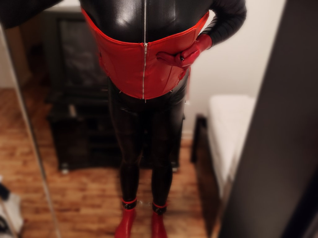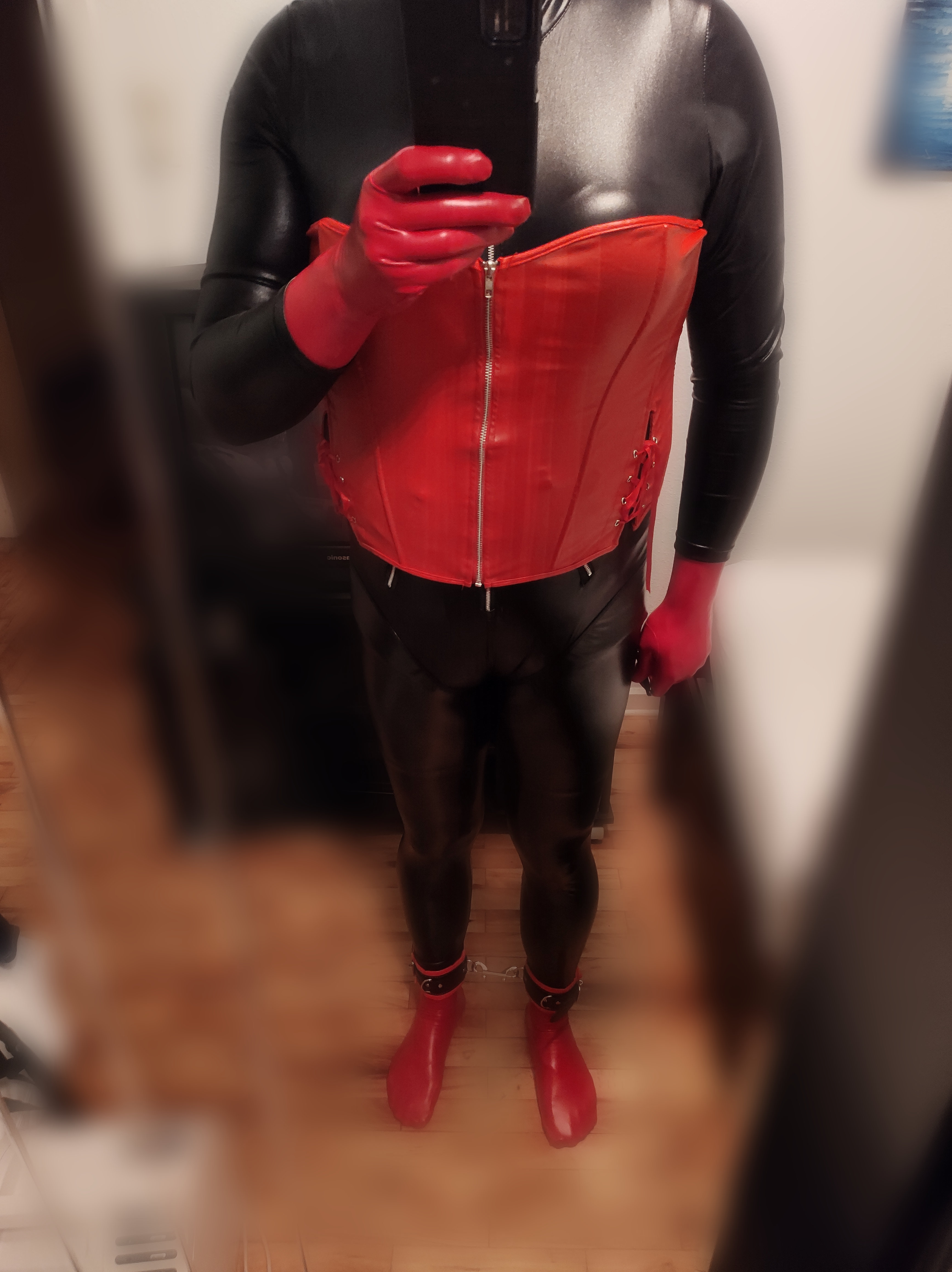 Currently wearing a shiny red one-piece swimsuit under my everyday clothes at the office and loving it.