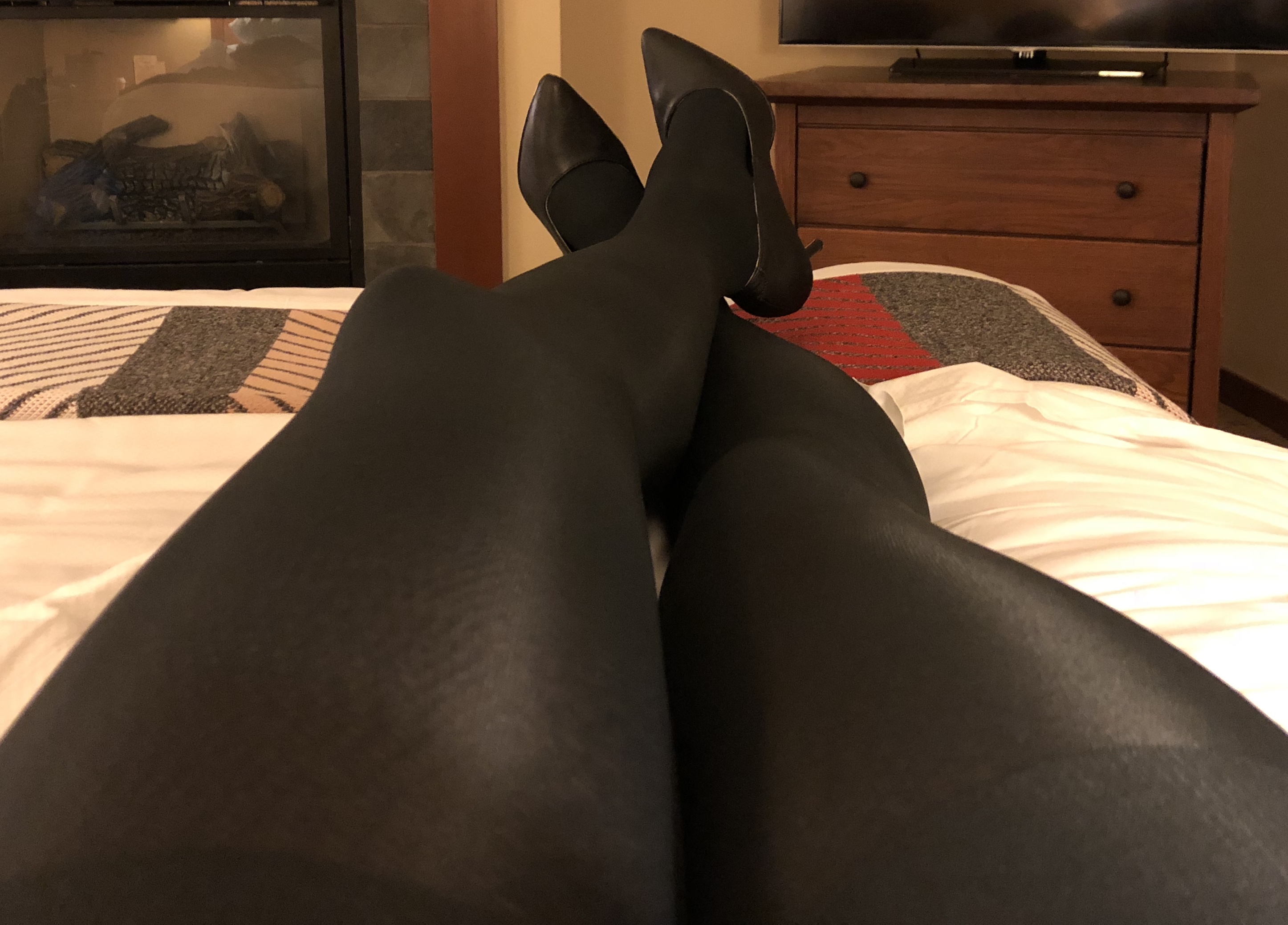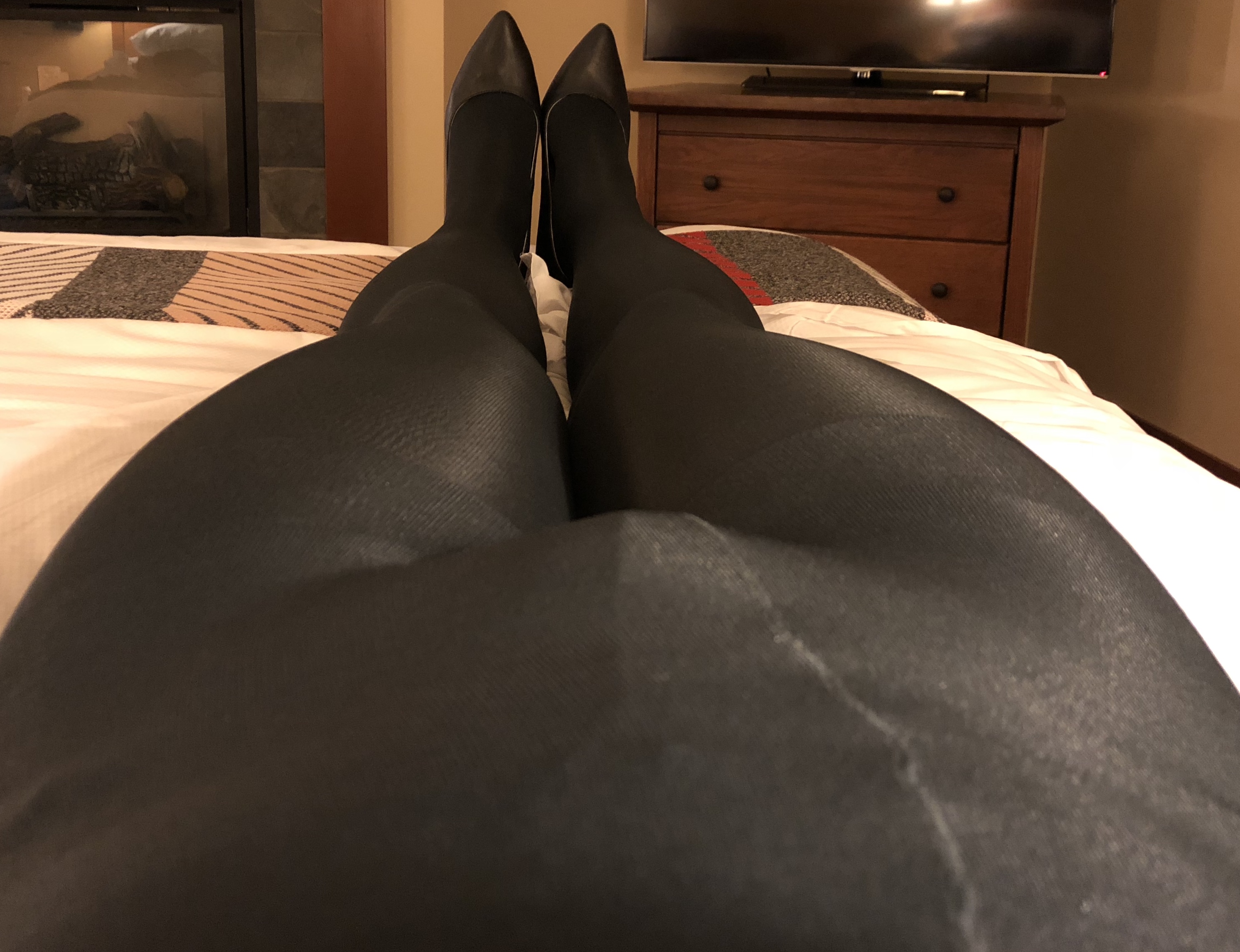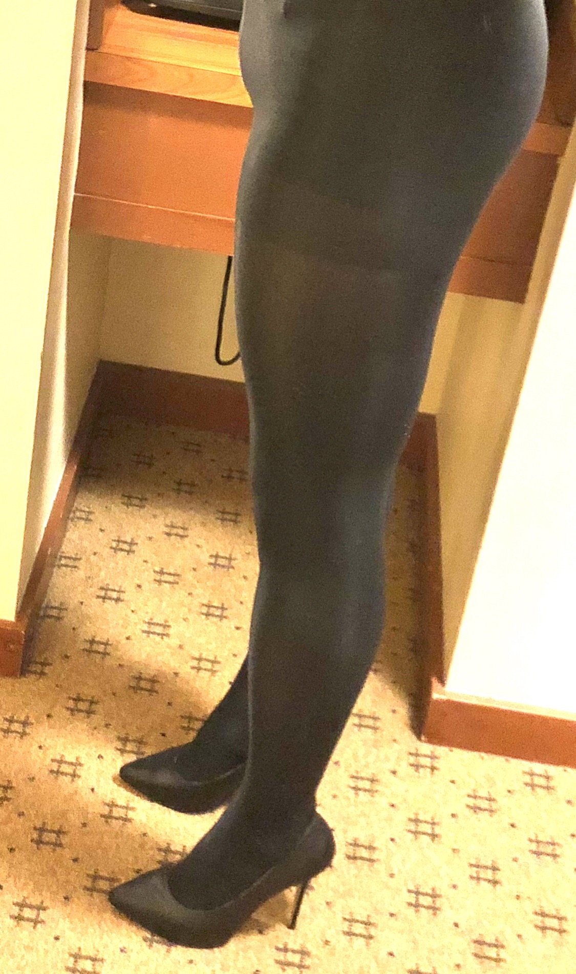 Playing in layers of black pantyhose with my new (size 12) heels. 😊