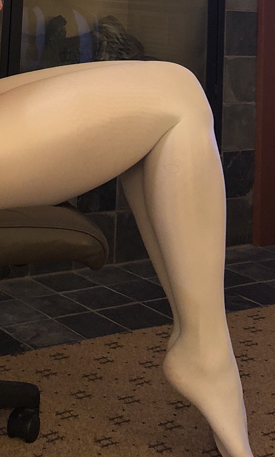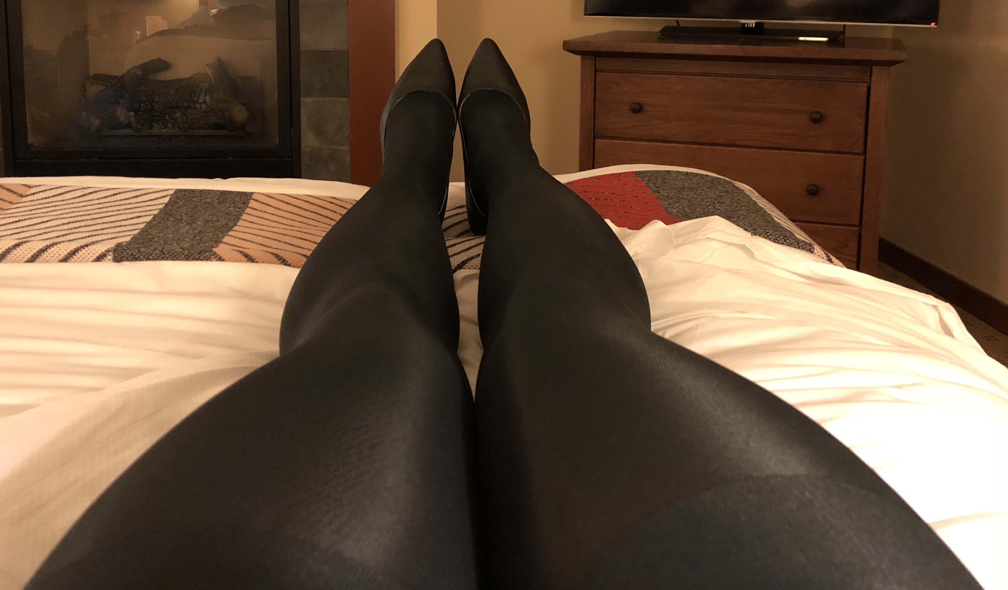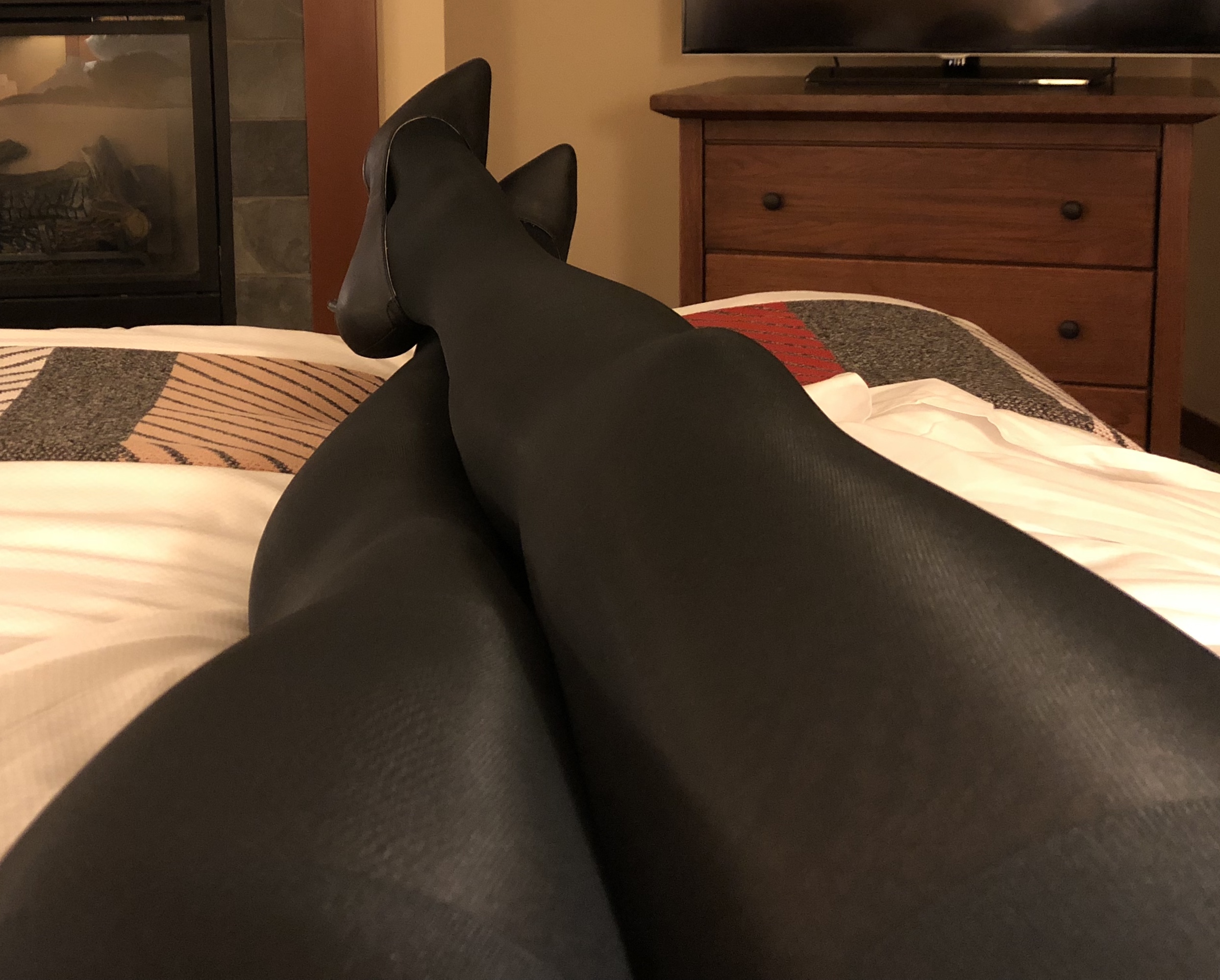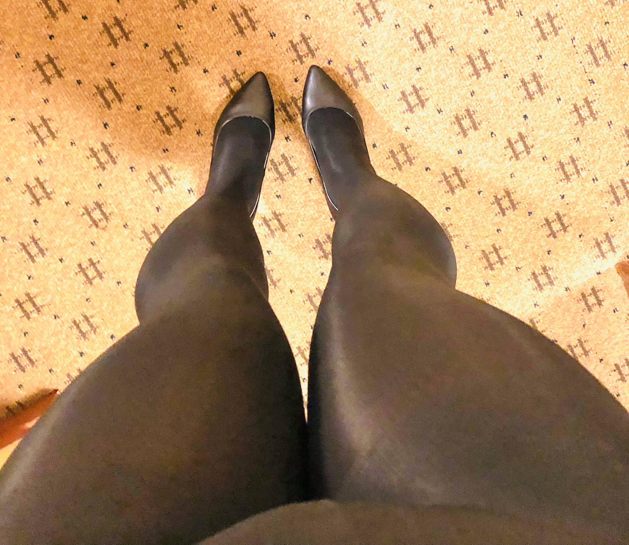 Playing in layers of black pantyhose with my new (size 12) heels. 😊
