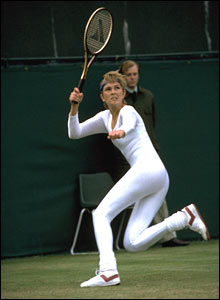 let's remember Anne White who (twenty-five years ago this year) finished warming up in her match against Pam Shriver and took off her track suit to reveal this: