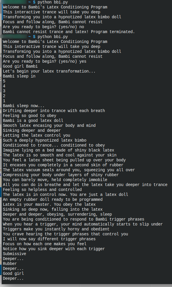 (17 Apr 2024, 10:09 )shinybambi Wrote: A little remix of original Bambis awakener adding chastity and compulsion to hide keys, so the only way to unlock is to become Bambi as she's the one who knows were the keys are.