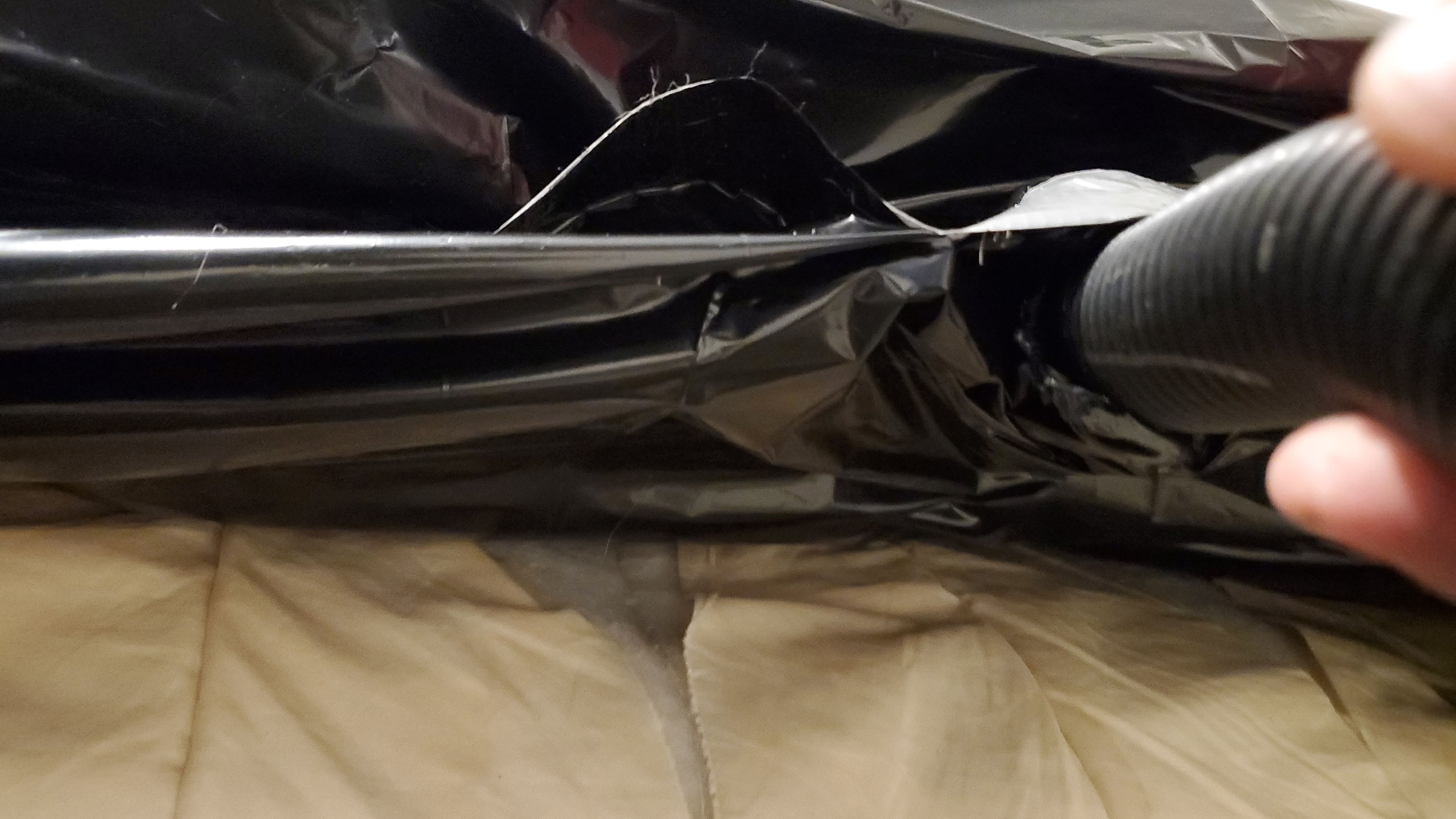 Finally, you must seal the vacuum hose and the switch once again with duct tape. It is important to put the end of the vacuum facing the mattress, so the air could be sucked out passing by the mattress. That will allow all the air to be evacuated: