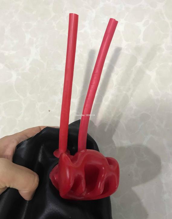 What interested me more about those for long term gagging is that the 2 tubes can be used to feed/water a person and allow for easy breathing while preventing speaking/screaming/moaning as the air cannot pass through your larynx or mouth. One tube usually is a straight shot down which is supposed to be used for the stomach while the perforated one is for breathing. What I was curious about is while it is used specifically to help those who cannot breathe, it shouldn't be too hard to breathe normally with one in although for extended periods the air is likely too dry and cold. Also once installed it blocks the stomach from your airway so you cannot choke on your vomit or saliva like a deepthroat gag.