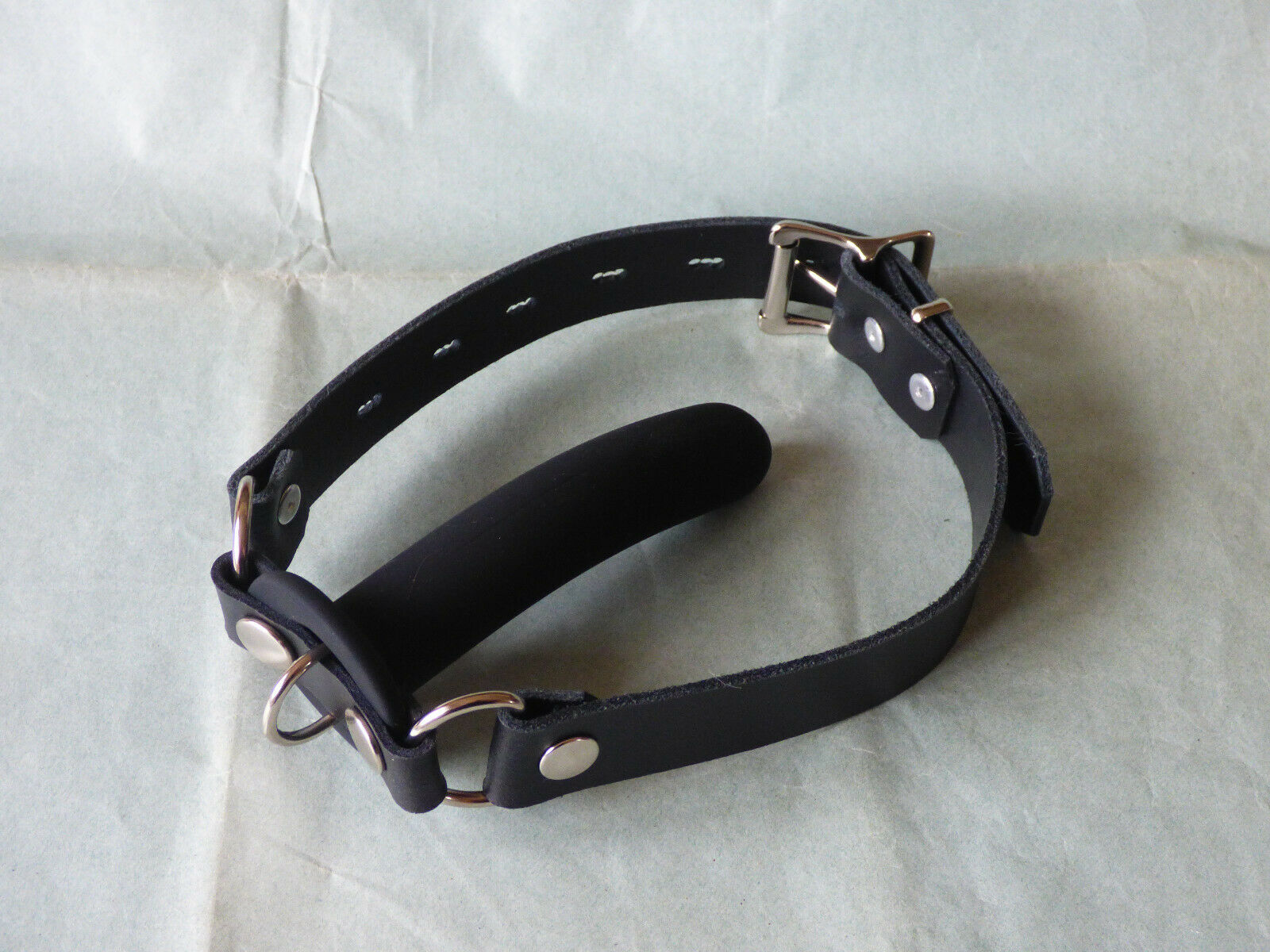 Before anyone is mislead, please bear in mind that the ad has a poorly photoshopped photo that shows the lock attached to a lockable buckle on a gag. This is not possible as the buckle hole is not large enough to accept the lock shackle.