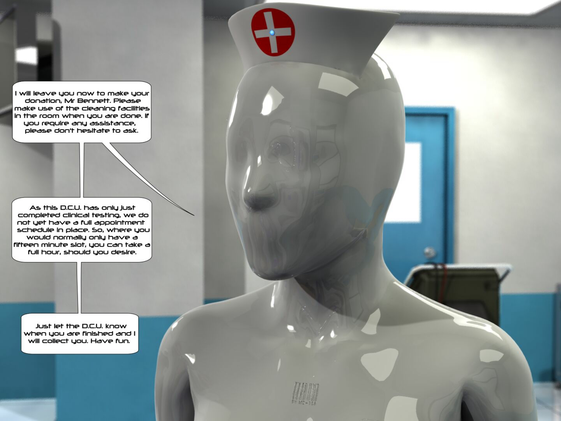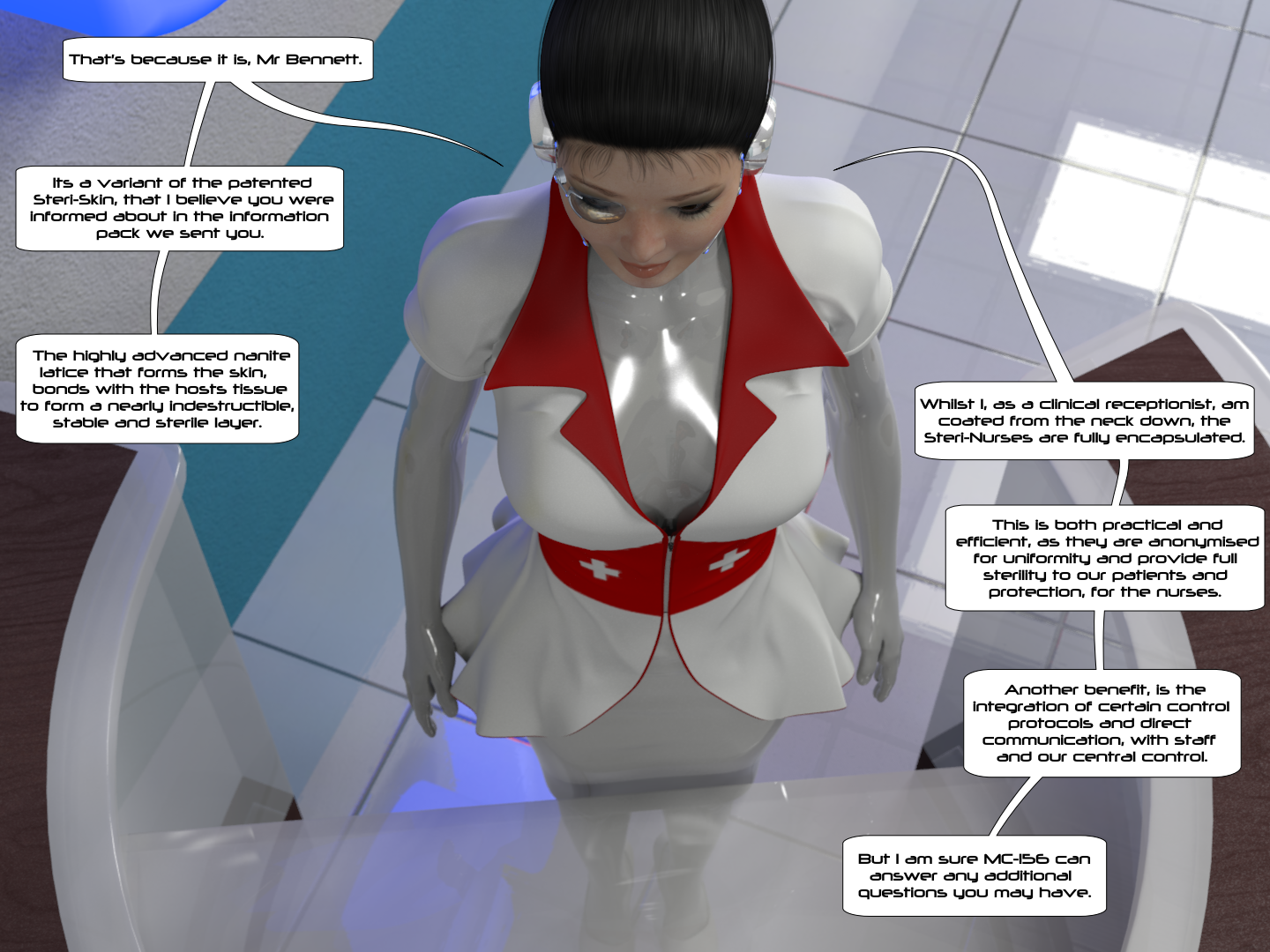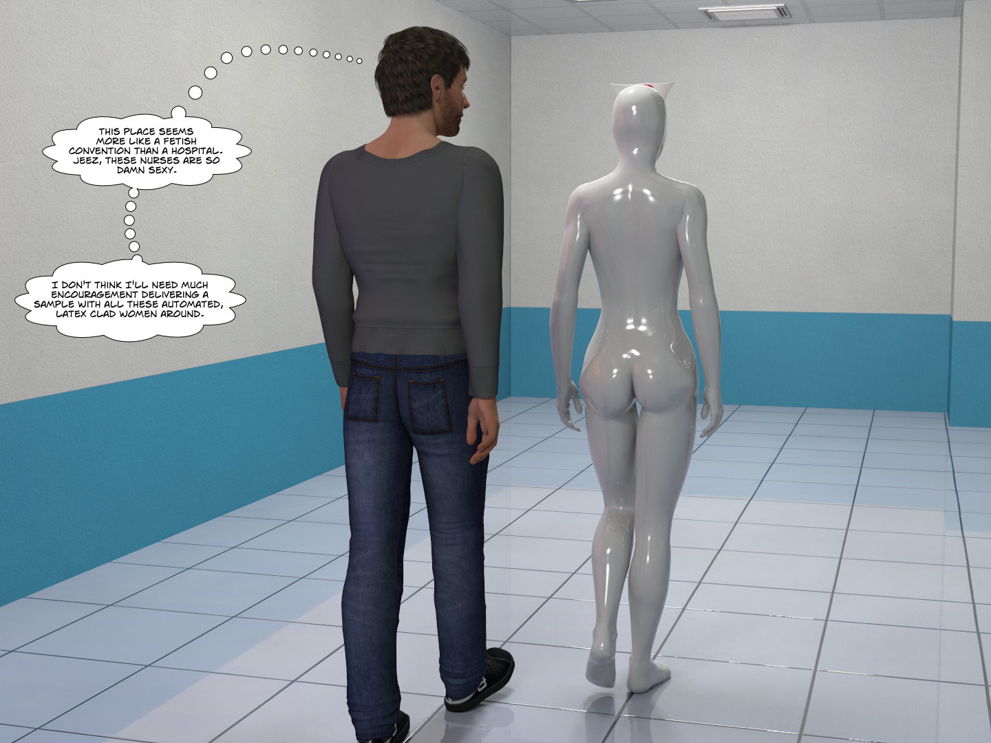 RE: "Steri-Nurse" latex encasement comic - Like Ra - 05 Aug 2021 (05 Aug 2021, 00:00 )Culmor Wrote: I know this is meant to be SN-BJ-749, the man we saw feminised in the second comicThe letters look like BJ-749 indeed! (05 Aug 2021, 00:00 )Culmor Wrote: I still think the pic would work better with a generic blank face. Probably, the idea is to make "him" less scary to the general public? But I agree, a blank face can "work" much better. RE: "Steri-Nurse" latex encasement comic - Culmor - 05 Aug 2021 The artist's notes say '[this is] SN-BJ-749...It's more the Doctor using BJ as a test subject for advances in the nanites that comprise the steri-skin.' Now, where's my passport? RE: "Steri-Nurse" latex encasement comic - Like Ra - 05 Aug 2021 (04 Aug 2021, 08:37 )Culmor Wrote: Full stories to follow.BTW, it's so much easier to browse through the images here, than on DA. RE: "Steri-Nurse" latex encasement comic - Like Ra - 05 Aug 2021 (05 Aug 2021, 00:40 )Culmor Wrote: Now, where's my passport?😆 RE: "Steri-Nurse" latex encasement comic - Culmor - 05 Aug 2021 Quote:BTW, it's so much easier to browse through the images here, than on DA. Agreed, and some of the images aren't on there anyway. I downloaded them as a zip file from 8muses Forums Telsis has a vaguely similarly themed 'bunnification' story which involves a guy finding an alien Easter eggs that transforms him into an over-sexed bunny girl. Not really my thing but YMMD. RE: "Steri-Nurse" latex encasement comic - Culmor - 02 Feb 2023 The first part of 'The Appointment', the follow-up to 'The Lesson'. As an aside, I've updated the first part of 'The Lesson' to include un-censored pics. RE: "Steri-Nurse" latex encasement comic - Culmor - 21 Jun 2023 'The Appointment' continues. RE: "Steri-Nurse" latex encasement comic - Culmor - 13 Sep 2023 RE: "Steri-Nurse" latex encasement comic - Culmor - 13 Sep 2023 RE: "Steri-Nurse" latex encasement comic - Like Ra - 13 Sep 2023 wow... even more fun ... Indeed, we all must have such suits! NOW!!! 😂 |