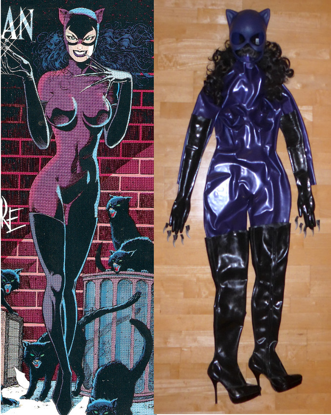 RE: Cosplay - Fetish or Fun? - Culmor - 29 Jul 2015 My Balent and Pfeiffer Catwoman cowls arrived from Reevzfx in the USA today so here a peek at some works in progress. The Balent one was made to match a rubber swatch I sent and Shawn did an excellent job 😊 Looking at close-ups of Michelle's cowl in the movie it's clear she wore a rubber hood beneath it. The rear zip of her catsuit reaches the bottom of her neck, then there's more rubber , then her cowl. Sometimes you can see skin between the hood and the chin-strap of her cowl (real skin, not the translucent rubber 'skin' you can see at her right shoulder). I couldn't see how this could work (maybe chlorination would help?) but I carried out a test using plenty of silicone lube over a latex hood and surprisingly the cowl slips on even easier over that than it does over just a wig-cap. Apparently the first time Michelle wore the full costume she didn't feel she could act in it and I can well understand why. The feelings of compression and enclosure are to say the least... distracting (and I don't even have the boots and whip yet). That said, I've finished building my prop taser. I was thinking of adding some LEDs (as per my GLaDOS headpiece) but thought it wisest not to tempt fate, the real thing is illegal in the UK after all... RE: Cosplay - Fetish or Fun? - Culmor - 02 Aug 2015 BelleChere wearing a Reevzfx Balent cowl. [video=youtube] Source: https://youtu.be/xqzcJ4vZABw [/video] RE: Cosplay - Fetish or Fun? - Culmor - 10 Aug 2015 I wasn't going to put any pics of my 'Batman Returns' Catwoman crossplay up up till I got the right boots and the whip but I couldn't wait to try the cowl with the suit. The pic is ghastly because I had problems with not being able to use the camera's buttons with the claws. Plus the gloves stuck to the suit so I broke both thumb claws getting them on. Wrist zips in them might be the way forward. Anyway here's the work-in-progress. Edit, it looks a bit like I'm wearing a face mask in this pic. I'm not, it's just Stargazer white foundation and powder from the Goth shops in Camden Market in London. RE: Cosplay - Fetish or Fun? - madjack - 11 Aug 2015 (10 Aug 2015, 22:47 )culmor Wrote: .......The pic is ghastly because I had problems with not being able to use the camera's buttons with the claws. Plus the gloves stuck to the suit so I broke both thumb claws getting them on....... This is just the sort of detail that both the comics and movies gloss over - how the hell does Catwoman get in and out of her suit without shredding it, and we all know how precious women get about breaking their fingernails! ![]() Maybe that's why the suit in the movies is covered in stitch marks - all the repairs Catwoman had to make after ripping it with her claws? MJ RE: Cosplay - Fetish or Fun? - Culmor - 15 Aug 2015 Quote:how the hell does Catwoman get in and out of her suit...Apparently she can even do it while driving O.o Quote:...we all know how precious women get about breaking their fingernails! I'm not much a fan of the Ed Brubaker incarnation of Catwoman but here's an excellent crossplay of her by Akane Xhoshigaki. RE: Cosplay - Fetish or Fun? - madjack - 18 Aug 2015 Cosplay warm-up stretching exercise.... or a new challenge for Culmor? 😉 MJ RE: Cosplay - Fetish or Fun? - Culmor - 18 Aug 2015 Here's Doctorderanged as the Black Canary. And I thought my BC leo was high-cut >.< As an aside, I saw the Spidergirl a while ago but I've been unable to post pics recently, just got the spinning uploading wheel that never stopped. Seems to be OK now though. Quote:... or a new challenge for Culmor? I already have one 😉 Work is in progress. RE: Cosplay - Fetish or Fun? - Culmor - 19 Aug 2015 An outfit based on a costume rather than a proper cosplay but still fun to wear. The same outfit with but Platinos Cleancuts and Capezio bodytights under the fishnets rather than Danskins Supershimmers, I think I prefer this look. RE: Cosplay - Fetish or Fun? - madjack - 19 Aug 2015 Sad news Batgirl actress Yvonne Craig dies aged 78 MJ RE: Cosplay - Fetish or Fun? - Culmor - 19 Aug 2015 Yes, even though it wasn't unexpected it was a great shock to read it. RIP. The last ten or so paragraphs of this obit indicate Yvonne and Julie knew exactly the effect they had on fans 😉 http://www.newsfromme.com/2015/08/19/yvonne-craig-r-i-p/ @madjack, there's been a lot activity by Batfans to try and have Getty Images take down that Batgirl pic. Whoever it is, it isn't Yvonne and it isn't even a very screen-accurate costume. Also, I have no idea why 'Madjack' has two 'k's above, it doesn't if I try to edit it! |