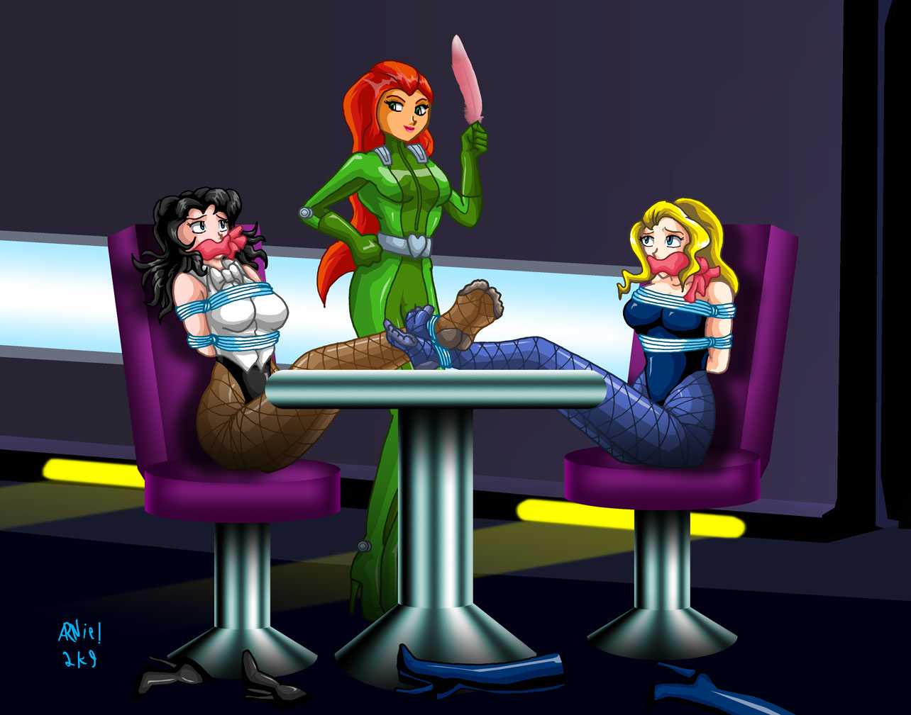 RE: "Totally Spies" - madjack - 24 Oct 2016 Oh those girls! Enjoy MJ RE: "Totally Spies" - Culmor - 29 Oct 2016 I suspect they're each loving every minute... RE: "Totally Spies" - madboyevil - 14 Nov 2016 I found this image, someone goes through the complete season of totally spies and found all the "particularities" of the show. Maybe the executive producer of the creator of the show was a bondage supporter RE: "Totally Spies" - sweetrubber - 14 Nov 2016 I like the 2 drawings of the girls from yesterday. The expression in their eyes is wonderful. RE: "Totally Spies" - madjack - 21 Nov 2016 another for the collection MJ RE: "Totally Spies" - madjack - 28 Feb 2017 How about this one: enjoy MJ RE: "Totally Spies" - Culmor - 04 Mar 2017 A puzzle for you... Personally I'd have liked to see Kim Possible on Sam but you can't have everything. RE: "Totally Spies" - Like Ra - 04 Mar 2017 Indeed, where's Wall-e? 😁 RE: "Totally Spies" - Frank - 06 Mar 2017 Where's Wall-E? He's around here somewhere.. Edit: Per LikeRa's suggestion, posting a pic more on-topic to this thread. RE: "Totally Spies" - Culmor - 08 Apr 2017 I don't think this one's been posted here yet... |