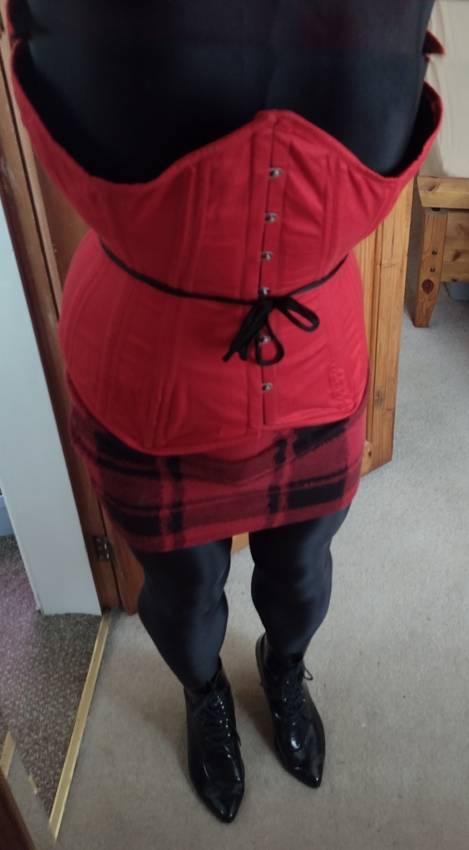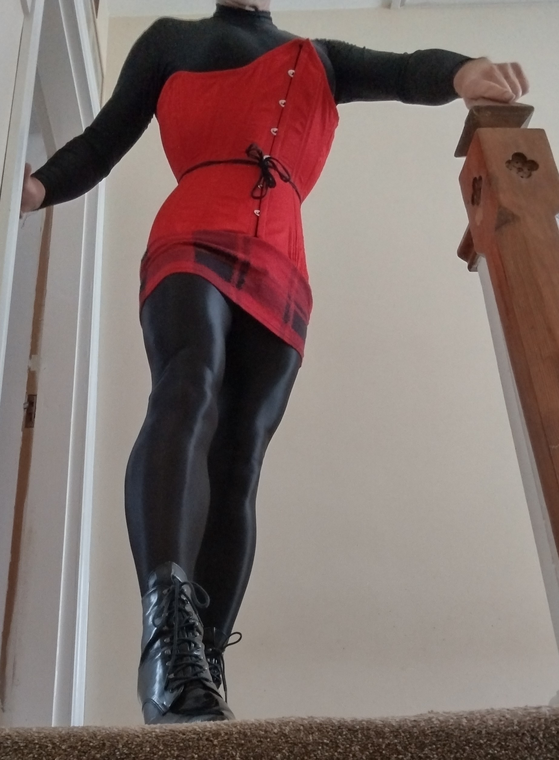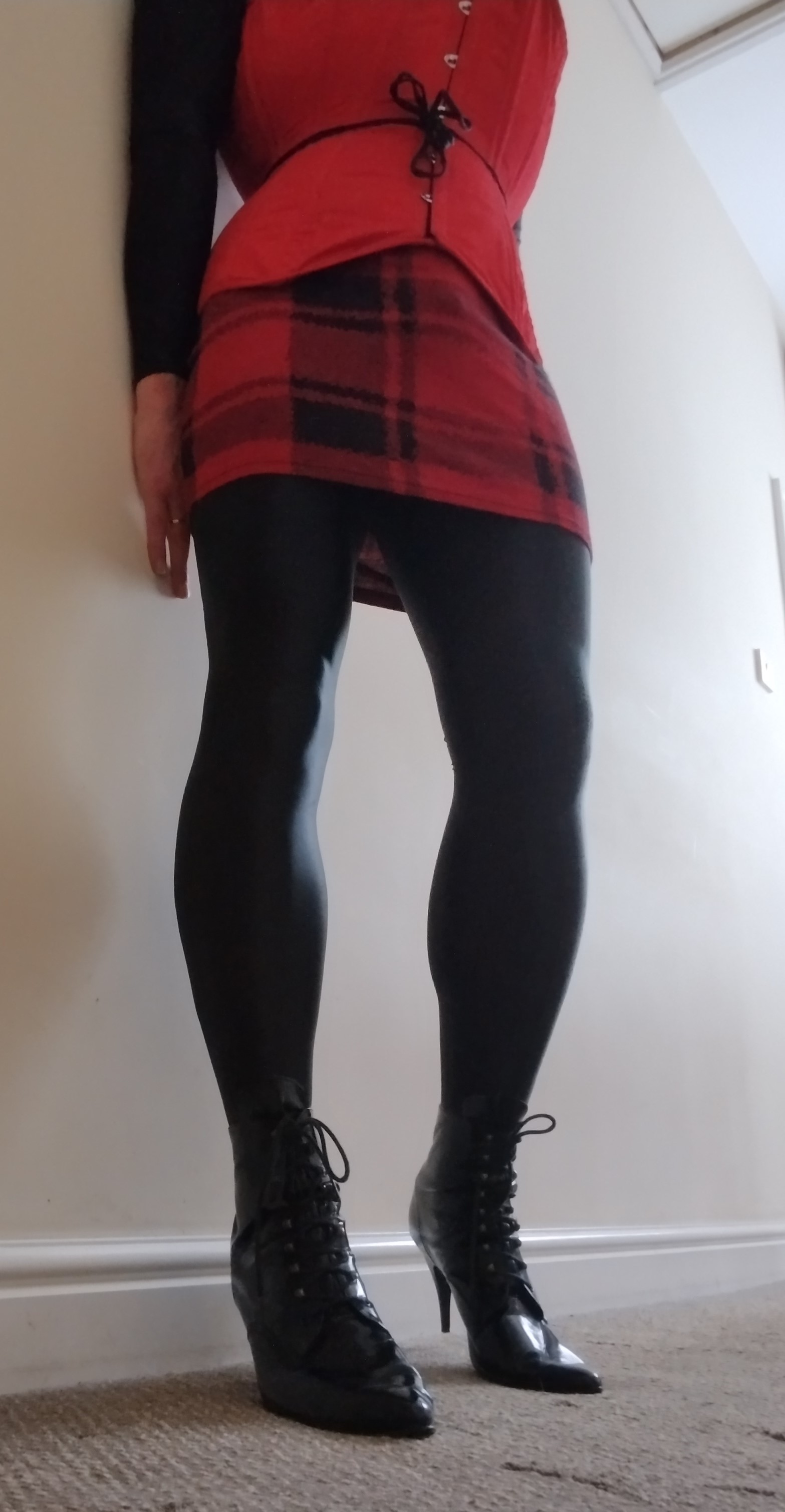 RE: What pantyhose/stockings are you wearing today? - madjack - 10 May 2024 Layers - oil black over oil tan Ahhh! Feels so good to be back in nylon And, of course, a cage, a little anal stimulation and heels - why wouldn't I? 😁 MJ RE: What pantyhose/stockings are you wearing today? - Like Ra - 10 May 2024 (10 May 2024, 10:39 )madjack Wrote: Ahhh! Feels so good to be back in nylonAin't we both home alone? 😉😋 RE: What pantyhose/stockings are you wearing today? - madjack - 12 May 2024 Today I'm still in a red and black mood - strange really, considering my passion for Tan.... Wet-look Gatta tights, tartan mini-skirt (rescued from recycling), red corset (bugger to get the 'hooks' to line up!) and my old favourite ankle boots. What you can't see is a nice plug and a tight cage 😁 MJ RE: What pantyhose/stockings are you wearing today? - Like Ra - 12 May 2024 (12 May 2024, 21:29 )madjack Wrote:Fantastic photo! Moar! RE: What pantyhose/stockings are you wearing today? - madjack - 13 May 2024 Today I'm wearing my favourite 'oil shine' tights in tan I thought the black 'wet look' skirt went quite well and had a chance to try out my walking too