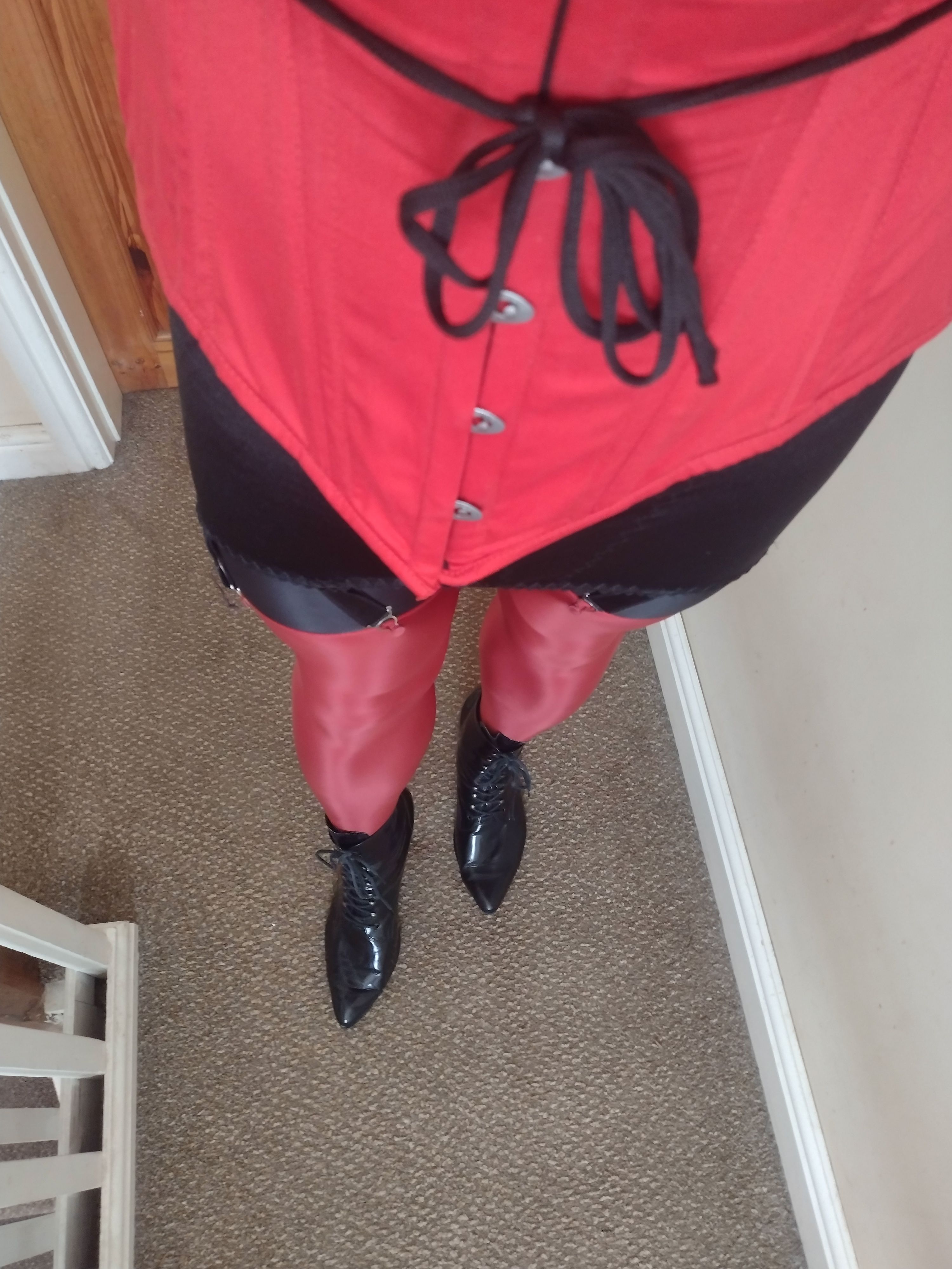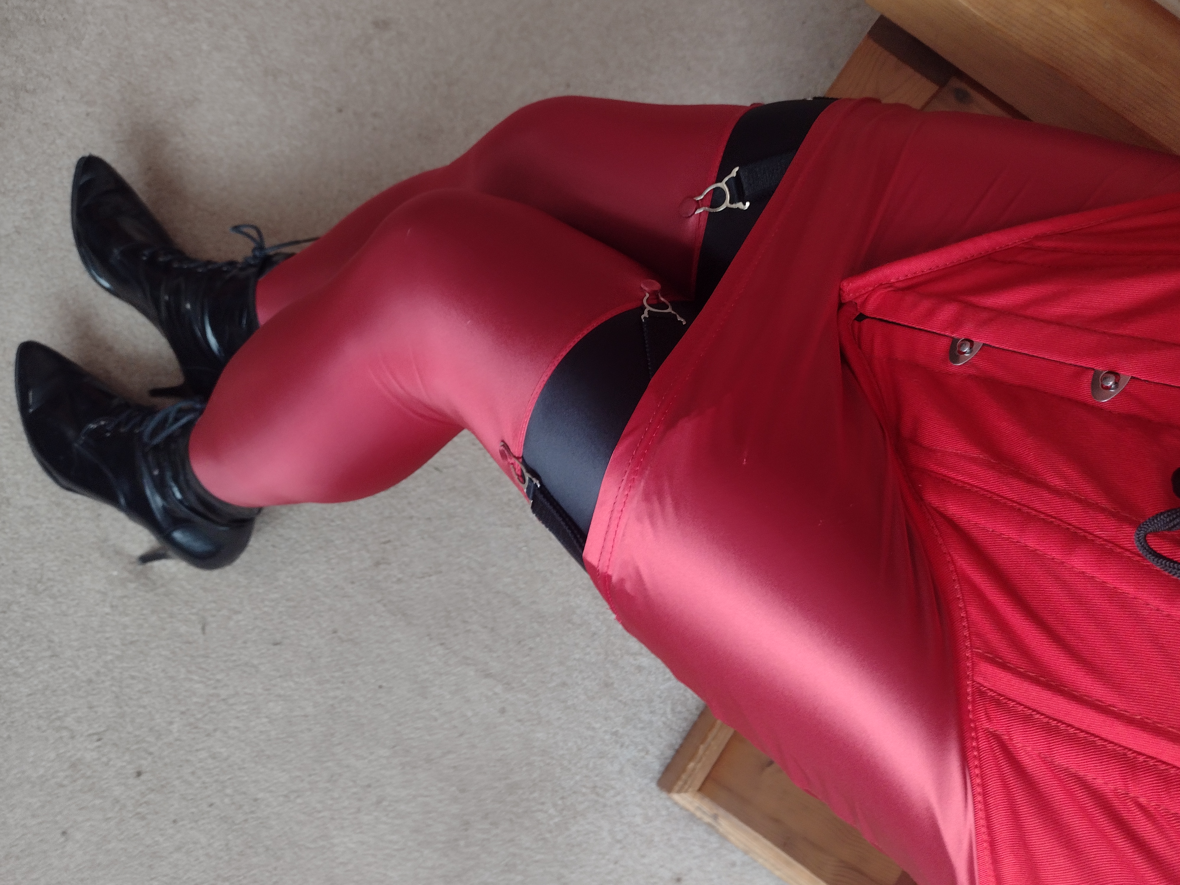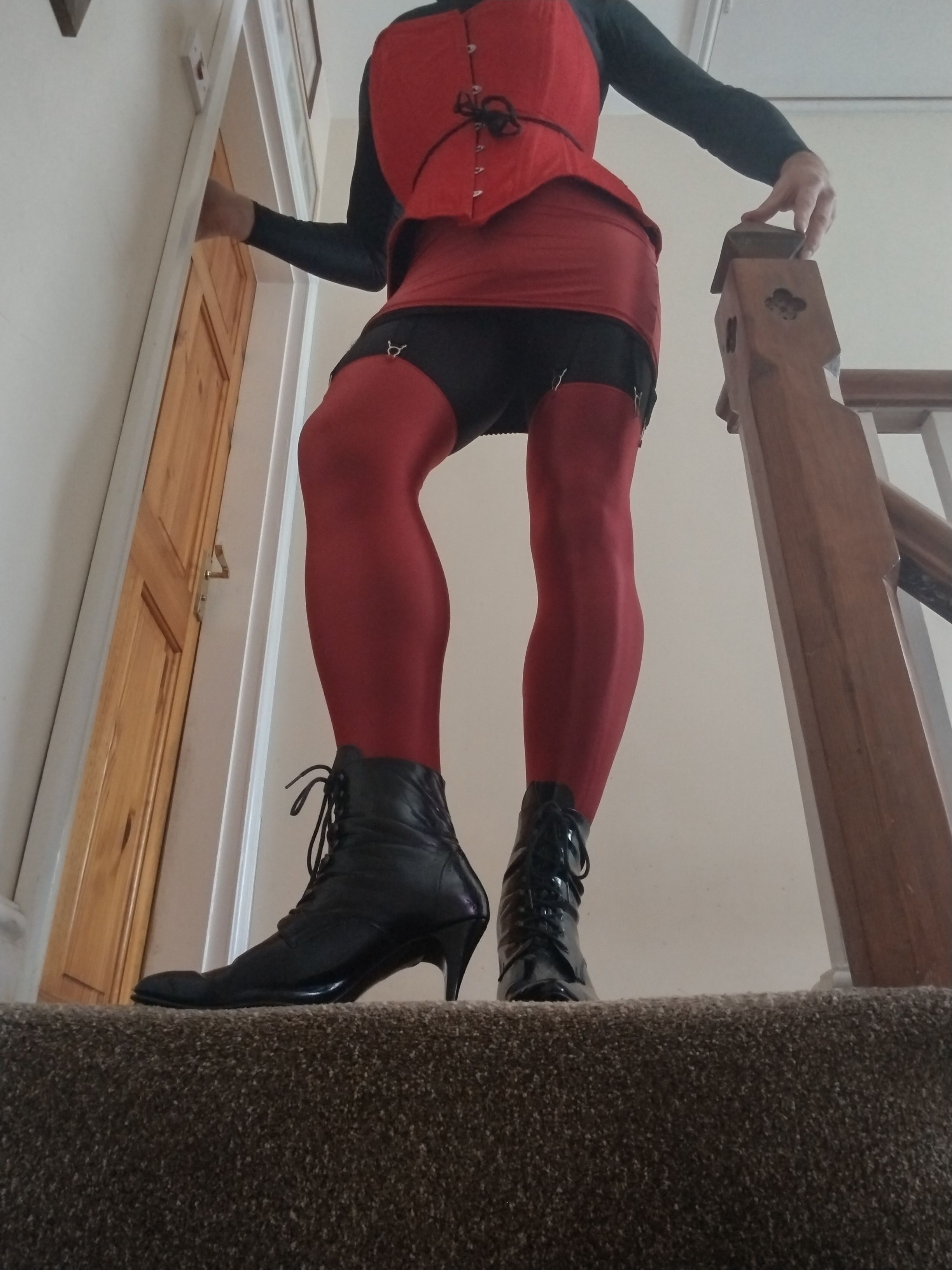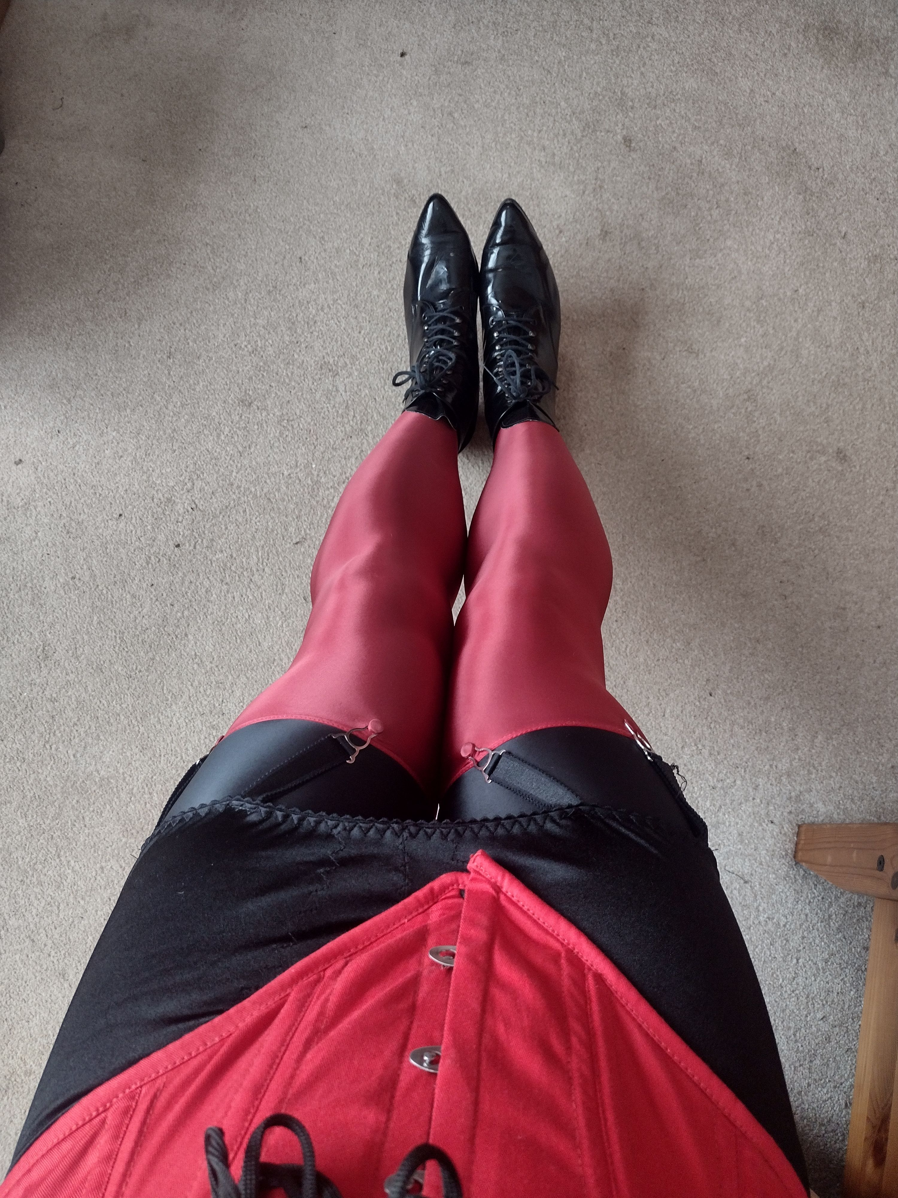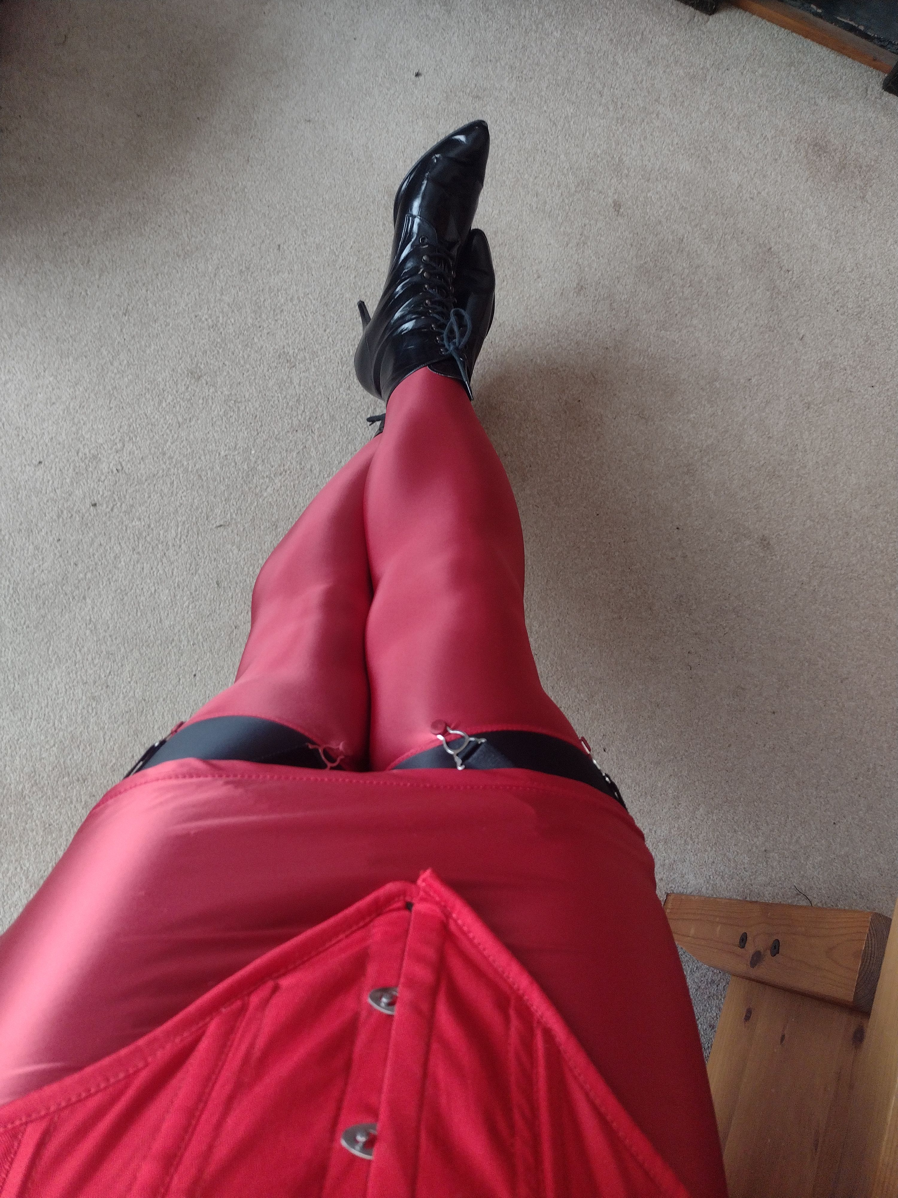 RE: What pantyhose/stockings are you wearing today? - madjack - 16 May 2024 (16 May 2024, 14:18 )Like Ra Wrote: ??? It will look as if you look down on your own legs, and not on the legs of someone trying to step on you 😂 I think I understand what you're saying - when I'm next able to, I will try some different POV angles and share them MJ Ps. that won't be possible in the short term... maybe in a month or so if things go to plan. RE: What pantyhose/stockings are you wearing today? - madjack - 17 May 2024 The last from my brief 'home alone' time, almost.... 😉 Red 'n' black for that splash of startling colour - both in 'oil shine' finish, with snug red mini-skirt, black garter belt and heels.