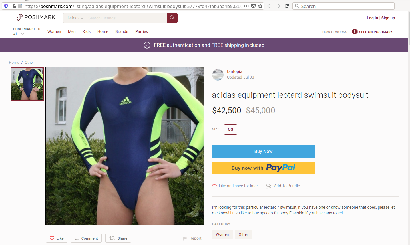 RE: RE: Leohex review - ltxrob - 14 Mar 2020 (14 Mar 2020, 07:52 )LeotardLover Wrote:youll have to let us know.. im 6'2" also!!(13 Mar 2020, 21:39 )Like Ra Wrote: The long-sleeved ones are the most elastic. I'm 175/75 - XL fits perfectly. - https://www.likera.com/forum/mybb/Thread-RE-Leohex-review?pid=37230#pid37230 RE: RE: Leohex review - unicast - 15 Mar 2020 (18 Feb 2020, 04:58 )LeotardLover Wrote: That is not an original design of any brand in Asia, it’s a copy of what is the most coveted collector leotard in existence, an original Adidas designed gymnastic leotard from I think 2005, that when rarely seen on eBay fetches over $1000. Buyers have to be very, very careful because eBay is FULL of high quality fakes. Just found such an Adidas original. The price is insane. https://poshmark.com/listing/adidas-equipment-leotard-swimsuit-bodysuit-57779fd47fab3aa4b502609b RE: RE: Leohex review - Like Ra - 15 Mar 2020 (15 Mar 2020, 16:41 )unicast Wrote: Just found such an Adidas original. The price is insane. Edit: Hang on... It's not for sale. Someone is looking for such a leo: Quote:I'm looking for this particular leotard / swimsuit, if you have one or know someone that does, please let me know! I also like to buy speedo fullbody Fastskin if you have any to sell So, the ad is priced to stay on top, and the discount is added to be listed in the discount lists. RE: RE: Leohex review - LeotardLover - 18 Mar 2020 (15 Mar 2020, 17:24 )Like Ra Wrote:(15 Mar 2020, 16:41 )unicast Wrote: Just found such an Adidas original. The price is insane. I was gonna say something isn't right but I see the relevance to the high price. The girl who offered to sell hers, I'm gonna bet is a fake. A friend of mine said only 200 were made. It was mostly sold/given to European athletes and everyone who now owns one knows what's its worth. I'm curious what that person paid. RE: RE: Leohex review - LeotardLover - 18 Mar 2020 (14 Mar 2020, 11:33 )ltxrob Wrote:(14 Mar 2020, 07:52 )LeotardLover Wrote:youll have to let us know.. im 6'2" also!!(13 Mar 2020, 21:39 )Like Ra Wrote: The long-sleeved ones are the most elastic. I'm 175/75 - XL fits perfectly. - https://www.likera.com/forum/mybb/Thread-RE-Leohex-review?pid=37230#pid37230 The XXL is short, the sleeves are 5-6 inches from my wrists. On me, the leg openings are much higher then in pictures I've seen. It's also too short in the torso. Not a leotard/swimsuit I would want to wear very long or often. If Leohex could make a XXXL with just a couple more inches torso length and 4" longer sleeves, I think that would satisfy more buyers. RE: RE: Leohex review - Anne - 20 Mar 2020 (14 Mar 2020, 07:52 )LeotardLover Wrote:(13 Mar 2020, 21:39 )Like Ra Wrote: The long-sleeved ones are the most elastic. I'm 175/75 - XL fits perfectly. - https://www.likera.com/forum/mybb/Thread-RE-Leohex-review?pid=37230#pid37230 When I bought mine I got the largest size, (might have been an XL). I'm 178 / 83, XL fits fine, a bit larger would have been fine, defenitely not smaller. RE: RE: Leohex review - LeotardLover - 21 Mar 2020 (20 Mar 2020, 14:50 )Anne Wrote:(14 Mar 2020, 07:52 )LeotardLover Wrote:(13 Mar 2020, 21:39 )Like Ra Wrote: The long-sleeved ones are the most elastic. I'm 175/75 - XL fits perfectly. - https://www.likera.com/forum/mybb/Thread-RE-Leohex-review?pid=37230#pid37230 I think XL was the largest originally, then men started buying them and XXL came out. I see XXL sell out all the time, probably more then other sizes. I've read many reviews from men wishing XXL was just a little bit longer torso wise. I never see complaints for girth. RE: RE: Leohex review - unicast - 01 Apr 2020