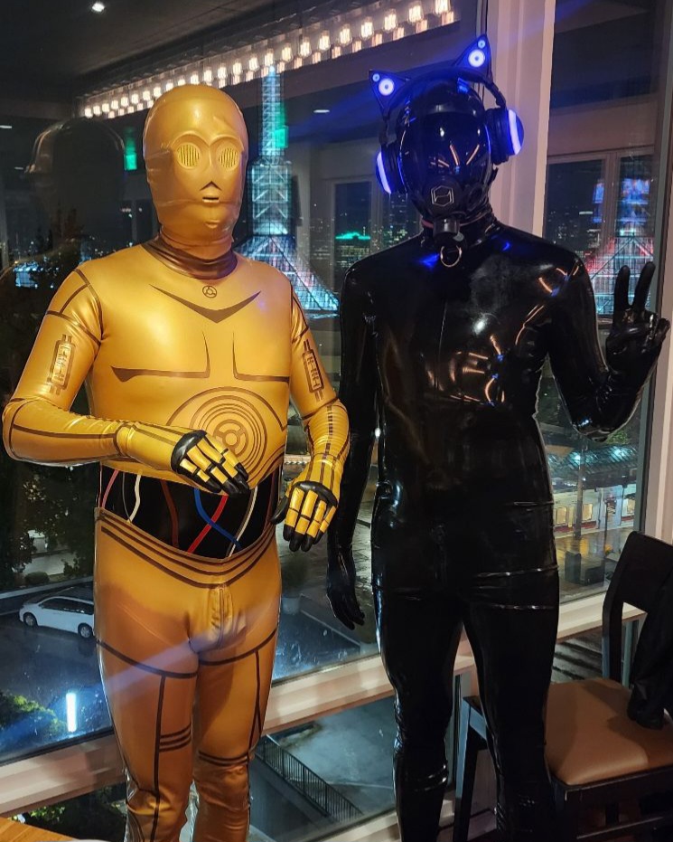 RE: HexCorp Dronification - Sofia_B - 16 Oct 2022 (16 Oct 2022, 21:20 )Like Ra Wrote:Well, actually I just haven't tried yet. But I was thinking about getting at least a skirt or a dress and gloves to see how it goes. I guess you can never go wrong with some cyberpunk aesthetics. RE: HexCorp Dronification - Like Ra - 16 Oct 2022 Start with latex panties! A skirt is also a good begining. RE: HexCorp Dronification - essanym - 03 Nov 2022 I went out Halloween night in Portland, OR as a latex drone to meet up with a fetlife friend. We were staying in a hotel only a few blocks away from the hotel with the restaurant we met up at so we just walked there; me in latex and my wife dressed as a witch. As this was my first time out in latex in public, I was quite nervous but as it turned out, people we encountered were very receptive to me. Several groups of people wanted to take pictures with me and touch my latex skin. Honestly, it was quite a transformative experience for me and I'm really hoping to do it again. The fetlife friend we went to meet suggested I start showing up to some Portland kink events in the future so I'm really hoping I will be able to do that. I wish I had more pictures of the evening, but I only have the one as I was overwhelmed with strong emotions so I didn't think too much about documenting the evening. There's a chance I made it into a few random people's twitter feeds, though. RE: HexCorp Dronification - Like Ra - 03 Nov 2022 (03 Nov 2022, 03:43 )essanym Wrote: it was quite a transformative experience for meYes! Sounds like my Europerve party visit. My kinks appeared to be something normal, what all those thousands are doing. RE: HexCorp Dronification - Culmor - 12 Nov 2022 I wrote of my respirator: Quote:...with my open-face hoods it doesn't quite meet up with the hood's edges at the sides for full enclosure. I tried it with a full hood with only eye, nose and mouth holes and the feeling of being sealed in is incredible. But I only have that hood in 'natural' translucent. I have a new 'under' hood 😊 RE: HexCorp Dronification - madjack - 12 Nov 2022 (12 Nov 2022, 08:18 )Culmor Wrote: I wrote of my respirator: Very nice! How well can you see through the mesh (I think that's what it is over the eyes)? And where did you find it? If I recall correctly (memory these days is not as good as it once was ), you like Libidex products, but I couldn't see it on their site or find it when searching using the image.MJ RE: HexCorp Dronification - Culmor - 12 Nov 2022 (12 Nov 2022, 08:38 )madjack Wrote:(12 Nov 2022, 08:18 )Culmor Wrote: I wrote of my respirator: Hi MJ, I thought you didn't like fishnet 😉 You're right though, it's from Libidex, an 'Anya' hood that I ordered in their recent sale. The rubber fishnet was a totally new experience for me, very different to sheet latex and I love it. Somehow it moulds into your lips and eye socket, very sensual! Because it's so close to your eyes the net (at least for me) is just a blur. I have it on now under my 85% tinted respirator and can (just!) see well enough to type by the light of my laptop screen. I'm going to try an open-face hood over the respirator next for another layer of enclosure... RE: HexCorp Dronification - Culmor - 12 Nov 2022 I just couldn't wait to try my new under-hood on and got the shakes! The triple rubber (I have a swimcap underneath and a rubber bit-gag) feels incredibly encasing. RE: HexCorp Dronification - Like Ra - 13 Nov 2022 I like the glowing cat ears! 😋 RE: HexCorp Dronification - Like Ra - 26 Nov 2022 The proper way of listening to hypno: Source: https://twitter.com/LatexMissrach |