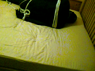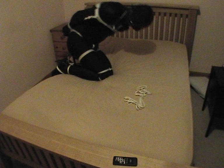 MJ-SB06/2013 – Zentai hogtie - madjack - 27 Jun 2013 My home alone days where here and I wanted to re-discover some of my old favourites for self-bondage fun. Equipment: 70den closed crotch nylon bodysuit Large butt plug Condom Black Zentai suit Rope (lots of!) Head harness ball gag High-heeled ankle boots Karabiner/Carabiner The session: To kick-off my few days of freedom (err…) I decided to try a simple rope hogtie, but spice it up by using my Zentai suit, which had not seen action for some time. To add some extra fetish fun I would insert my favourite plug and also wear a second bodysuit under the Zentai one – well, I’m I pervert, what would expect?! As always the thrill as my condom encased cock slid inside the sheath of the nylon bodysuit ensured I was very eager to proceed with my self-bondage. I had set up two video cameras, one looking along the length of my bed (I would be tied up, not tied to!) and the second at 90degrees to the bed where I expected my head to be. All my gear ready to go! Ready to go with my ankles tied, with rope around and under my booted heels, then more loops below and above my knees, with a further loop at the top of my thighs (this is one I find especially sexy for some reason) – all cinched very tight! My harness gag is on and, of course, the well lubricated butt plug is inside my ass. You might also spot the waist rope that circles around my body and then passes down and through my crotch several times, pulling tight and framing my triple encased cock (and also pulling the plug deeper inside me). The pre-prepared wrist coils and chest/upper body ropes are all near to hand. I’ve already clipped the Carabiner, with hogtie rope, to my ankle bindings. I’m struggling into the coils around my upper body. This is not as easy as some may think, with my legs tightly bound and the softness of the mattress contributing to my precarious wobbling - not at all sexy at this point of the proceedings! The upper coils are in place and I’ve cinched them tight by passing a rope between my chest and arms (both sides), then up, behind my neck and back down again to prevent any risk of them slipping downwards (they really were tight so that risk was very small). Now I’m struggling to get my wrists through the prepared coils behind my back, with a sliding noose (the hogtie rope) ready to cinch the coils tight when I stretch out. I’m ready to go, but slightly afraid. Is it just me who hesitates before the final act that will plunge me into helplessness? All the worries fly through my mind: will I be able to get free? Are my back-up plans in place? Will I be safe from unwanted disturbance? What if it all goes wrong and I get stuck? Deep breaths and then I pass the point of no return as I fall towards the mattress, feet kicking out in an involuntary act that snatches the cinch noose tight around my wrists and tugs my bound heels and wrists towards each other… oh sweet bliss it feels so good! I writhe and struggle, testing my bondage and fanning the flames of lust that where reignited as I felt the first thrill of helplessness. After my initial thrashings I change my movements to seek stimulation, feeling the exotic caress of nylon under Lycra within my enforced encasement. Curse my own cleverness (or should that be idiocy?) – The bondage is too tight for my hands to reach my cock, no matter how hard I try. Worse still my cock is encased in three different coverings (latex/nylon/Lycra) and so de-sensitised that my frantic ‘humping’ actions to bring a desperately lusted for orgasm are hopelessly futile… but it’s fun trying! My self-bondage is controlled only by my own willingness to stay bound and after 20 long minutes I am exhausted and nicely frustrated by my efforts to cum; it’s time to free myself. This isn’t at all easy as the wrist cinch has pulled very tight and locked itself on – I experience a strange thrill as I struggle to overcome the resistance of the rope, my actions hampered by the Lycra over my fingers. Incredibly my flagging erection is rekindled as I work at the knots, what a wonderful feeling. Free at last – well, almost! My wrists are out of their bindings and my hands make and almost involuntarily move to my cock. Yet even now I’m frustrated as the cleverness of my dressing prevents an easy orgasm and leaves me once again frustrated but strangely happy. What went well? So many things just worked during this session. The ropes – so nice and tight, but also very comfortable for the 20minutes or so I was bound, and I didn’t have any bruises or marks afterwards which is always a bonus! Double (or even triple) encasement – why I haven’t tried the combination of both a Zentai and nylon bodysuit like this before I will never know! The feeling of nylon next to my skin being rubbed (or should that be ‘caressed’?) by Lycra was utterly amazing and I really enjoyed my helpless wriggling on the bed! The combination of latex (condom), nylon (bodysuit sheath) and Lycra (Zentai suit) over my cock was a wonderfully frustrating feeling; sensitive enough to become aroused but not enough feeling to orgasm… perfect for holding my lust and arousal at just the right level. Tied up – you may have read my post (tied up or tied to?)and even voted about the merits of being ‘tied up’ versus being ‘tied to’ and how I felt that ‘tied to’ was better… well this session was a very big celebration of being tied up’– simply put I loved it! What could be improved? To be tied longer and be truly helpless – it’s always the same, I started out looking for a (relatively) easy to escape bondage but near the end I wished (oh how I wished!) the session could have ‘made’ to last longer. This may seem strange to some 😒, after all I could have chosen to stay bound for as long as I wanted, but there is something much, much, more erotic to me in the feeling of true helplessness, knowing, without any doubt at all, that I ca