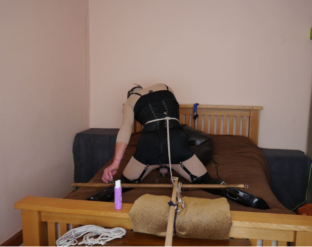 MJ-SB04/2019 – Dildo on a pole (part 1) - madjack - 27 Jul 2019 A long weekend of ‘home alone’ time was finally upon me and I wanted to make the most of it… which makes the fact that for the first 30hrs or so I did nothing all the more perplexing! However, I was now in the mood and decided to attempt a scenario that would leave me helplessly bound and at the same time impaled upon a dildo deep in my ass. This was a small part of a deeper self-bondage fantasy, where I would be skewered by two ‘cocks’ one in my ass and the other in my mouth, which would also form part of the bondage – with me being unable to free myself of their presence until the ice/timer/forfeit permitted it. Equipment: x2 Tan pantyhose suit (no hood or gloves) knee-highs Body Control mini-dress Cock cage Corset Stockings 5inch heels Long Lycra gloves Head harness and collar Leather ankle cuffs Bra and silicon breast forms Large dildo on pole Rope Rope-ratchet Spreader bar, shackles and chains The session: For whatever reason I wanted to try out (test fly?) a part of my fantasy in a kneeling/face down position. I suspect that this was in part due to the obviously submissive nature and vulnerability of that position. I fixed the dildo onto a wooden pole (broom handles are so useful!) which was lashed to the frame of the bed. A large leather cushion would support my body and enhance the ‘ass-up’ position I was seeking. Dressing was slightly different from usual as, for obvious reasons, I needed to keep my ass-hole uncovered – to this end I selected two of my older pantyhose bodysuits; the first is a proper ‘open-crotch’ design and the second had the crotch torn (during self-bondage play – I was desperate!) and was now been modified to have a small opening in the appropriate place! My cock was initially encased in a knee-high and then locked into the cock-cage with straps around the base of my cock and my balls. I added my false breasts, corset and mini-dress using some clip-on suspenders to hold up my wet-look stockings. I packed my mouth with some only knee-highs and pulled a knee-high over my head to keep everything neat. Next came my latest toy, a head harness with collar. This was brought to replace my worn-out harness gag and is utterly amazing. It’s slightly complicated to put on by yourself and ideally I’d like a third or even fourth hand to help, but once all the straps are buckled shut, the collar locked in place and the mouth zipped shut and padlocked….. wow! My dressing was completed with my high-heels and a pair of leather ankle cuffs, tightly strapped in place. The position I wanted to get into was to use the spread-bar to force my legs wide apart, then insert the dildo partially inside my ass before using the rope ratchet to ‘force’ it further in, then hold it there, as I bound my gloved wrists (hopefully the pictures will help explain). What went well? The dressing side went really well, with everything working and feeling just as I’d wished it to You might have already guessed this, but I LOVE my new head harness! The design is almost perfectly as I would have wished it to be. It fits neatly and tightly in place and, so far, has proved impossible to remove without undoing the buckles (which can be locked in place – so thoughts of ‘enforced’ longer term wearing are already in my head) My new video camera – this is a cheap, but good quality, ‘go-pro’ type device that produces excellent images (can you spot the red dot on the shots from above?). I’m tempted to buy another one (or more) if I can get them at a decent price. The rope-ratchet concept worked (despite the failings of other components – see below) and I was already planning on how to re-use this in a fresh attempt. What could be improved? My ‘securely attached’ dildo was anything but! I’m sure others will have experienced the same, but I’m amazed at how strong my sphincter muscles are, and the amount of effort required to overcome the initial resistance my ass has to being violated by anything - once I’m in the zone and enjoying being ‘ravished’ the problem seems to go away and at times I can be very ‘accommodating’ (though I still doubt I’m up to the sizes that some people seem to take with ease!). I was determined to fix that problem as soon as I could (see part 2). The position may not have helped, but there were moments when I felt things almost working and I’m not giving up on this idea. Well, there you go - another session shared, I hope you enjoyed it. Play safe MJ RE: MJ-SB04/2019 – Dildo on a pole (part 1) - The inspector - 28 Jul 2019 I think the issue with the dildo is the attachment to the solid pole. It almost needs to be “one unit” which would stop it moving around so much. Either way it’s a good session! Thanks for sharing! You don’t help my urge for another session myself! RE: MJ-SB04/2019 – Dildo on a pole (part 1) - Tinker D - 28 Jul 2019 You know, if you get a peice of plastic pipe that will slip over the broom handle and the dildo, that will prevent the dildo from falling out of alinement. RE: MJ-SB04/2019 – Dildo on a pole (part 1) - The inspector - 28 Jul 2019 (28 Jul 2019, 12:02 )Tinker D Wrote: You know, if you get a peice of plastic pipe that will slip over the broom handle and the dildo, that will prevent the dildo from falling out of alinement. Kind of what I had in mind, my thoughts lied along the dildo being one piece with the pole, almost like a broom handle, rounded end means a dildo and a pole in one of that makes sense? No point of failure then. RE: MJ-SB04/2019 – Dildo on a pole (part 1) - Tinker D - 28 Jul 2019 Correct. And when your done, just remove the pole from the tubing and that’s it. RE: MJ-SB04/2019 – Dildo on a pole (part 1) - The inspector - 28 Jul 2019 Be good if you could easily drill out the centre of a dildo and then but some threaded bar in with epoxy. Could have a removeable attachment then. RE: MJ-SB04/2