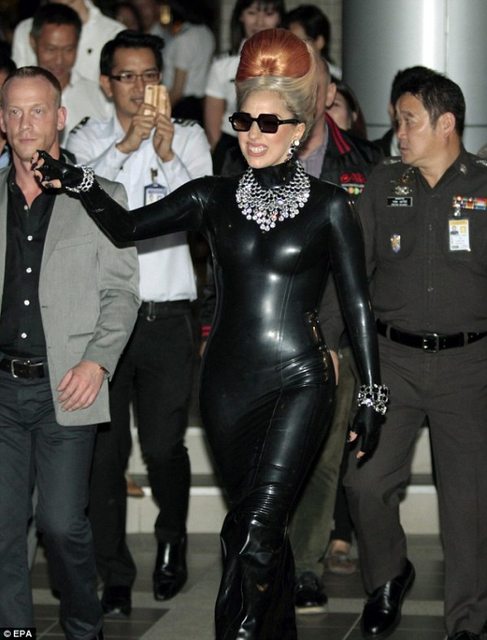 Do not confuse leather with latex, heel-less shoes or Lady Gaga at JFK