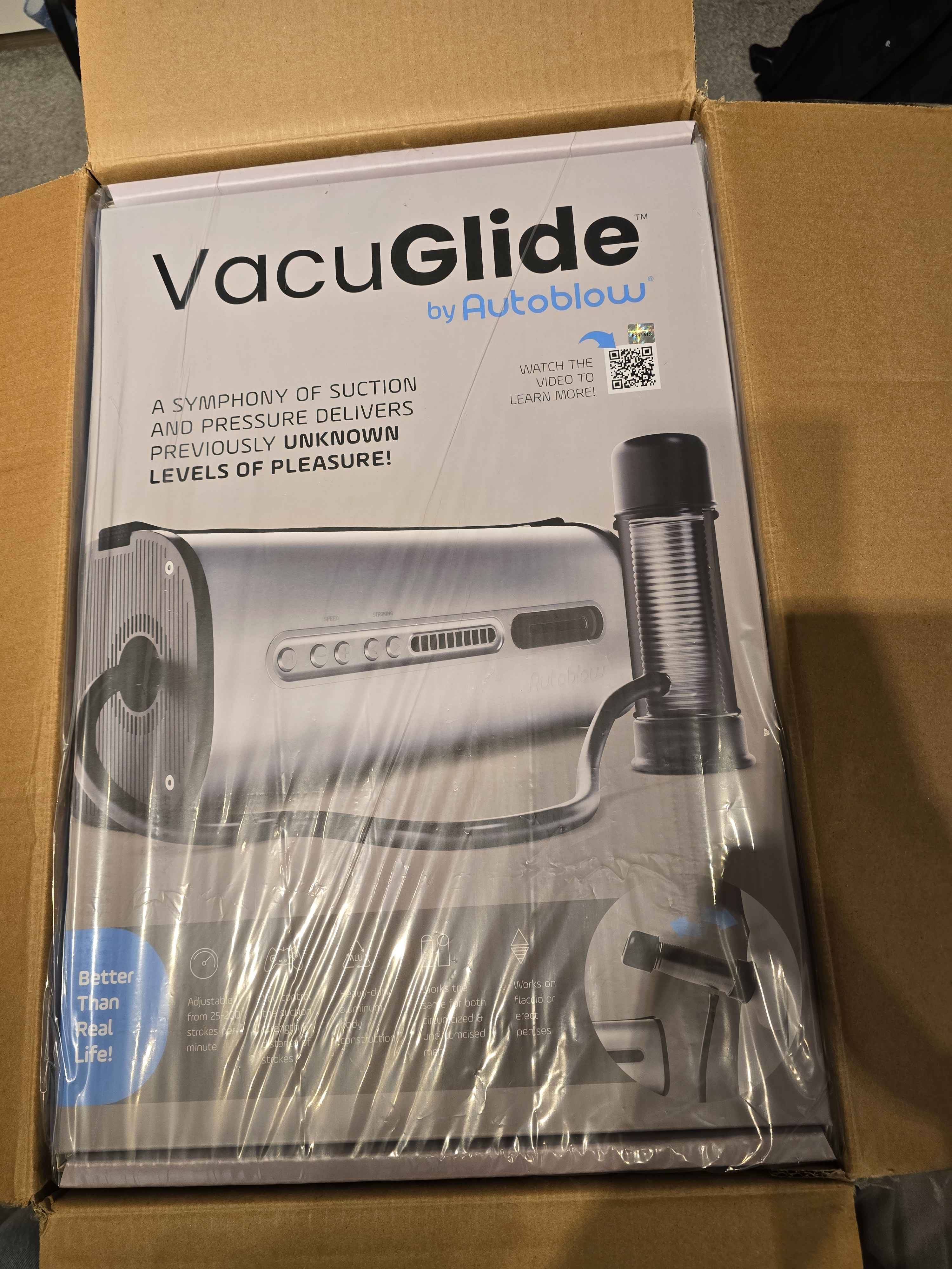 VacuGlide Male Milking Machine - Personal Review - happyscope - 20 Dec 2024 A Personal Review of the VacuGlide Male Milking Machine Introduction: When I first came across the VacuGlide, I was hesitant. $800 on a device felt indulgent, but curiosity—and the reviews and videos I saw online—got the better of me. This isn’t sponsored and I can say whatever I want about it (Cons listed below) Now, having spent several weeks with it, I can confidently say that it’s been one of the most worthwhile indulges I’ve made (I have spent a lot more in all honesty on fet clothing/toys/branded pieces in the past) . The VacuGlide isn’t just a “toy”—it’s a game-changing experience. This isn’t some gimmick; it’s a meticulously designed piece of engineering that delivers on every promise it makes. Mix it with Self-Bondage timed releases and your in for a post orgasm whirlwind… Build and First Impressions: The first thing you notice about the VacuGlide is its heft and quality. This is not a cheap, plastic toy—it’s an industrial-grade machine that means business. I believe around 14 pounds, it feels substantial, but the included backpack makes storage and transport easy. When I unpacked it, the attention to detail was evident—from the durable materials to the three differently sized stroker sleeves. It’s clear a lot of thought went into making this device adaptable to all users. Each part has its own cute little compartment! Setting it up didn’t take all that long, I know others have said it did but I was unboxed and playing in 15 mins?. The controls are intuitive once you get the hang of them, but there’s a learning curve if you want to start playing with stroke lengths but a video online they made makes that easy too. I spent some time experimenting with the various settings and sizes to find the perfect fit and suction level. Once I got everything dialed in, though, it was pure bliss. The Experience: Let me start by saying: this thing delivers in ways I didn’t think were possible. The combination of suction and stroking is simply unmatched. It’s not just about physical stimulation—it’s the way the VacuGlide replicates (and surpasses) the sensations of a real blowjob, complete with vacuum pressure that feels deeply personal and immersive. And you can’t eve run away from it :0! I’ve seen the claim that it works even if you’re flaccid, and I can confirm—it’s true (1 hour tied up with this going at it made for….a mess….). The suction gently coaxes you into an erection, and from there, it’s a ride like no other. On my first full session, I found myself climaxing faster and harder than I expected, and even then, the VacuGlide didn’t let up. I had to scream/moan/struggle and fight until the sensitivity on my pecker calmed down and went for another climax after that! I even did a session with my DG Lab Estim device and Magbound Self bondage lock….. If you want to hear about that please let me know! Pros: • Versatility: The three different sleeve sizes mean it’s perfect for any mood—whether you’re looking for a snug fit or something more relaxed. • Quiet Operation: Despite its power, the VacuGlide is surprisingly quiet. I tested it in my bedroom with the door closed, and you can barely hear it. • Hands-Free Bliss: Once you’ve got it suctioned on properly, it stays put. You’re free to lie back and enjoy the experience without any awkward adjustments. • Durability: The metal construction and overall design make it clear this machine will last. It’s built to take a beating (literally). • Unmatched Sensation: The suction and stroking create orgasms that are not only intense but also full-body experiences. • Post Orgasm Fun : Flacid doesn’t mean your safe…and this means it’s a perfect self-bondage pleasure/torture toy Cons: • Price: It’s not cheap, and while it’s worth every penny, it’s still a significant investment. • Size and Weight: At 14 pounds, it’s hefty. You’ll need a dedicated spot for it during use, but honestly, the backpack makes it very manageable. But this isn’t the kind of piece im expecting to just take out anywhere anyway. So not really a issue for me or most people I think. • Learning Curve: Adjusting the settings for stoke lengthen the most pleasant experience but very doable. • Remote Control : At the time of review, there’s no online control or functionality with a remote meaning you need to use your own or partners hands in person to control it….(I hear that this is a feature coming though!) • Mounting options : By default, this device doesn’t have any harness/straps to help keep it upright or against your body. While the suction does a great job, would be nice to have an official solution. Ive used an elastic band contraption so far. Highlights and Tips: What really stood out for me was the ability to customize the experience. Using the allen wrench to adjust the stroke length and experimenting with different lubes gave me a lot of control over how the VacuGlide performed. Thicker lubes created more friction, which added to the intensity, while slipperier ones made the session smoother and more relaxing. I also appreciated the subtle ribbing inside the sleeves—they’re not overly textured but just enough to enhance the sensation. My favorite discovery was switching between the smallest sleeve for tight suction and the middle one for more extended sessions. It’s amazing how a slight adjustment can change the experience entirely. I would love to see more sleeves! People have said you can use brands such as Venus sleeves in this device. Performance: Once everything is dialed in, the VacuGlide just doesn’t miss. Every session has been consistent, reliable, and mind-blowingly pleasurable. I’ve had moments where I was shaking from the intensity of the orgasms it delivered. It’s like it was designed to milk every last drop out of you—and then some. One surprising aspect 