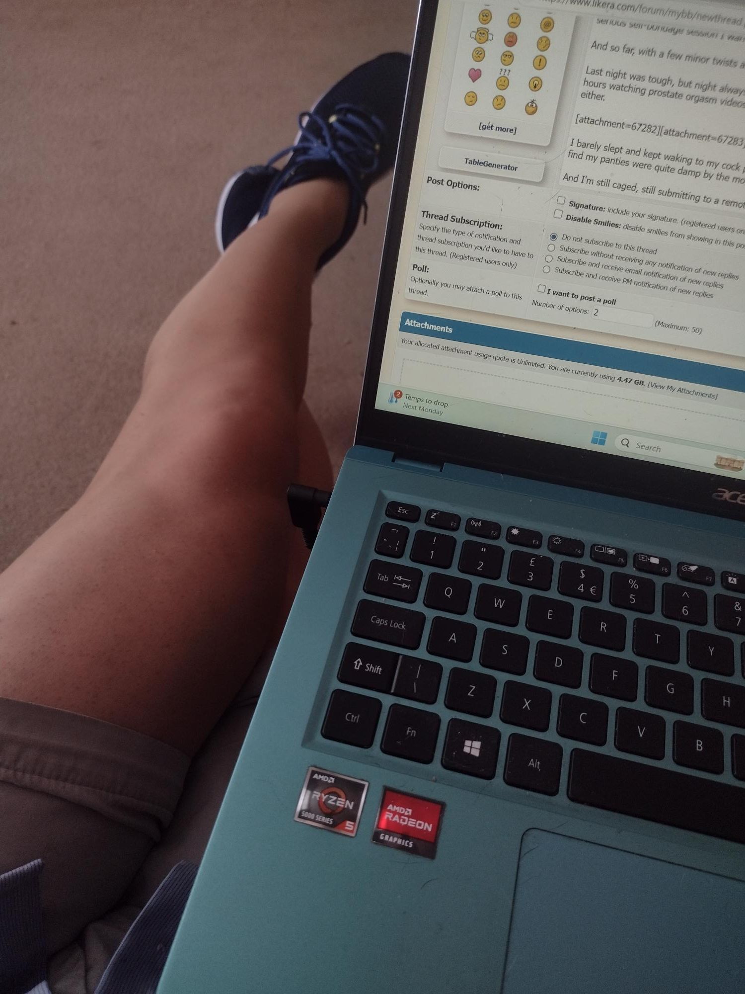 MJB - 2025/01 - when you're remotely controlled - madjack - 10 Jul 2025 MJB - 2025/01 - when you're remotely controlled This is a very different self-bondage tale, one I never imagined, dreamt or even fantasised I would undertake. It doesn't involve ropes or straps or cuffs or any of the usual elements that feature in my adventures. To be honest it doesn't really involve bondage, at least not in the classic sense. It isn't even finished yet, nor will be for many days. Let me explain.... Equipment: Cobra style chastity cage Single use coded security tags Various tights Skirts Heels Panties The session: Have you ever had an idea suddenly pop into your head as you chat with a friend? Something totally out of the blue and quite startling compared to your usual thoughts? Well, I did, only a few days ago, and on impulse I acted upon it. The friend is a person I've never met, but have chatted with through the wonders of the internet and the delights of FetLife. We'd chewed the fat on all kinds of things kinky or fetish related and enjoyed some very exciting exchanges of ideas and fantasies. I was at the start of my home-alone week and had locked myself in a chastity cage, intending to see how long I could resist the urges that always come over me when I'm physically unable to play with myself. As I sat at my home office desk, trying to do my best at clearing my inbox, whilst caged and wearing a pair of lovely sheer tights I amused myself with a bit of chit-chat with my online friend. Normally this is as far as it would have gone, but I was clearing away my chastity cage bag (with many cages in it - I know, shocking!) I spilt a packet of plastic security tags and a strange plastic peg that nearly always come along with the chastity cage and it's barrel lock. As I was on a boring conference call, I found myself fiddling with the tags and a spare chastity cage, trying to work out how the set-up worked. It was obvious the plastic peg replaced the brass barrel lock, but it took be a few attempts to poke the security tag through the slot in the peg and out so it could be fastened - locking the cage closed, without needing the key and barrel. I'd understood the concept of course, but never bothered to try it. And that's when the idea struck me - with a key I would always be able to open the cage (emergencies only - honest!) and I'd genuinely managed over 4 days continuous chastity before succumbing to temptation. If I used the security tag, there was no key to release me, so I couldn't so easily submit to temptation. Better still, if someone could check that the cage remained sealed and the tag unbroken, with some kind of forfeit if it wasn't, then I'd have more incentive to resist any urge to simply break the tag and release myself (though the option was always there in case of emergency). I tentatively floated the idea with my online friend who asked a few questions before agreeing to indulge my little fantasy. I showed them my cage, barrel locked in place, and asked them to pick a tag number from the selection I'd got. "How long can you keep it one?" "Until next Monday if I can. Forfeit if not?" "963578" "Done...ulp!" "Shit! Shouldn't I have asked what the forfeit was first?" "Bit late now 😁 " And that 'shit' was for real, as I suddenly realised I'd got carried away in the moment and not thought things completely through first....sound familiar?? Well at least I knew I had to stay caged now for longer than I'd ever managed before.... or else...???? The messages kept flowing back and forth until we got onto the experience of orgasm when caged ".....that doesn't mean you can between now and unlocking though.." "oh....so no orgasm even caged then..." "Nope, zero orgasms unless its achieved through anal stimulation" " Feminine clothing daily, at least from the waist down. Tights under male clothes should you have to venture out too." ".... I should tell you to remain plugged except when toilet breaks are required but actually I think you should NOT have any plugs or toys in use for the duration..." " Ohhhhh...... But why????" " Maybe I'll relent on the no ass play by the weekend..." All of the above is genuinely from our message chat, edited down to make for easier reading. And the strange thing? I suddenly really wanted to see this through, to fully commit to the game we were playing. Just like a serious self-bondage session I wanted it to work. And so far, with a few minor twists and turns it is working and I am remaining committed. Last night was tough, but night always are when you're locked away, especially if like me you'd spent many sexually frustrating hours watching prostate orgasm videos and trying to work out how to achieve one! The heat didn't make things much fun either. I barely slept and kept waking to my cock pulsing for few seconds, almost as if I was about to orgasm, but never quite. I did find my panties were quite damp by the morning... And I'm still caged, still submitting to a remote controller, going to the shops with tights under my trousers, still femme from the waist down inside the house (tights and panties right now) And I'm still hoping that, before the weekend, I might beg the use of a magic wand, or plug, or dildo, or something....anything! This morning's check-in has passed muster: I couldn't help myself at one point and had to quickly bind my legs And I'm getting so bold in my garden, openly wearing tights under my shorts, in full view of any nosy neighbours. What went... is going well? I'm finding it hard to explain how much pleasure and enjoyment I'm getting from this (at least so far!). I would never, ever, have imaging doing this until 2 days ago and yet here I am. Selecting a slightly bigger cage, but with a small ring had really worked for me. Whenever I find myself becoming aroused my cock begins to grown but is brought up short before even half erect. For some reason this, in my current circumstances, perfectly erotic. I grow, I pump a tiny amount every now a