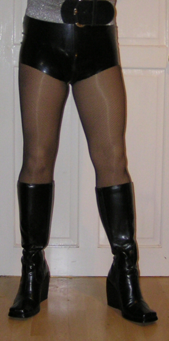 Probably not the average sex symbol, but today I got these boots, shiny outside, warm inside. The images show them with the upper shaft folded, but they can be worn straight as well. Unfortunately, they are a bit small for my feet, but I hope to widen them over time.